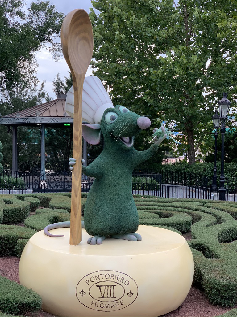 Next up, let’s chat about the many gorgeous topiaries at this year’s Festival. My personal favorite is always Beauty and the Beast in France! This year, hitting my top topiaries list included Pooh & Friends in United Kingdom, Remy in France and Tinkerbell in United Kingdom. I could spend half the day meandering around Epcot just taking it all in. With an explosion of color and wonder, the beauty astounds. Don’t forget about all the cool selfies you can take. Just take out your handy passport, and check off each one. It’s a free scavenger hunt…see if you can FIND all 23 topiaries. While you’re looking for Topiaries, Epcot’s construction walls are perfect for really cool photos! 📸