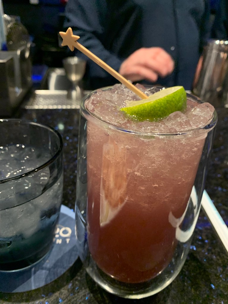 My spirit of choice: Stargarita. I love margaritas and this one just sounded excellent. Watching the bartender pour my drink was an experience, too! The concoction went from light gold to a beautiful, starry pinkish purple. The Stargarita was a wonderful combination of sweet, strong and tart. I loved it! Look how fun the pick is! 10/10 ✨