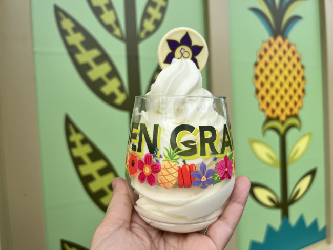 FYI: You can also participate in the Garden Graze. Foodie scavenger hunt! Purchase any 5 menu items from the Garden Graze locations, collect your stamps, and then head to Pineapple Promenade for your prize & treat! It’s a Souvenir Cup with Pineapple Lime Dole Whip & 50th white chocolate decoration on top.