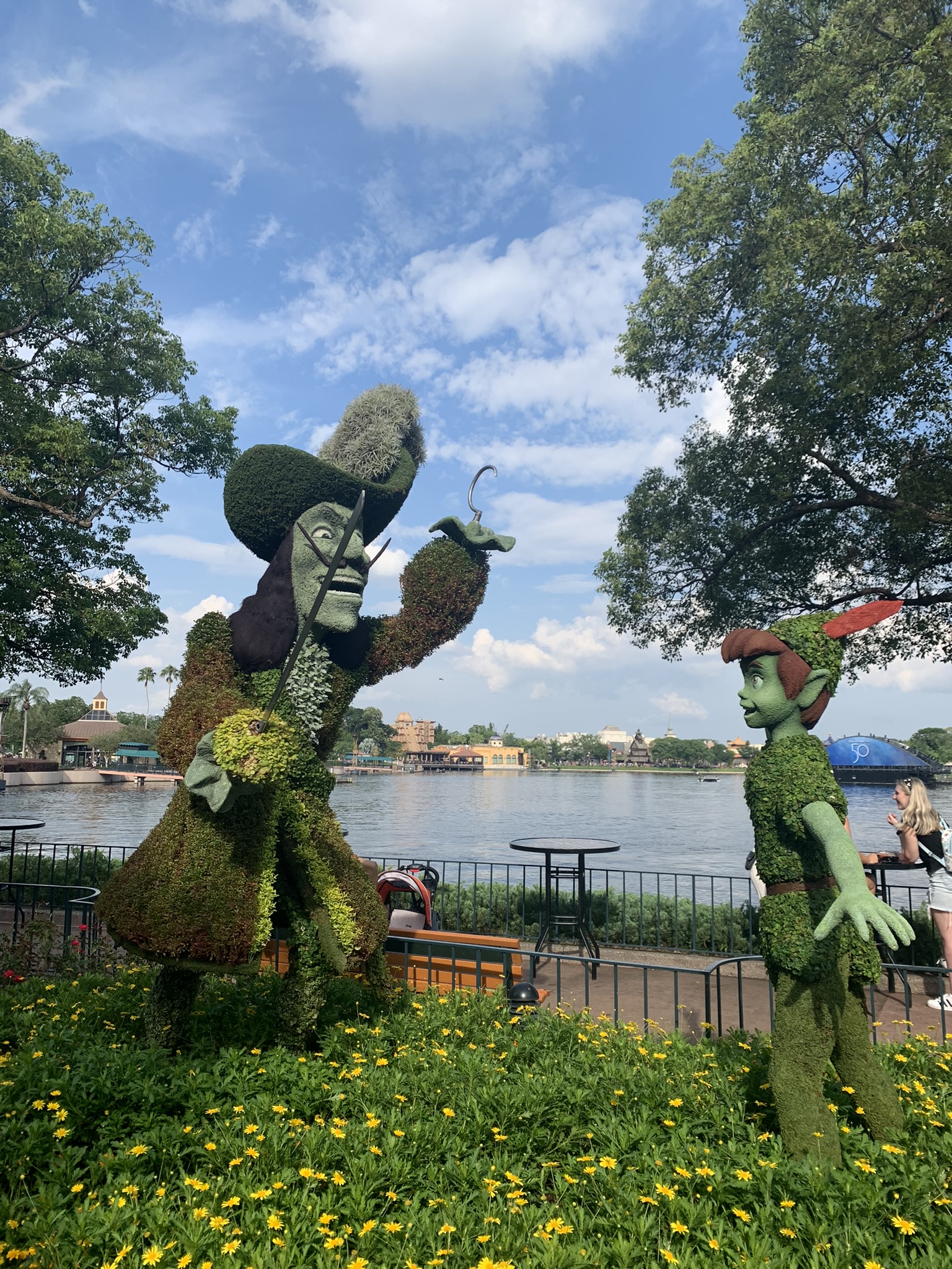 Topiaries: Peter Pan, Captain Hook & Tick Tock Croc, Winnie the Pooh & Friends, Tinker Bell.