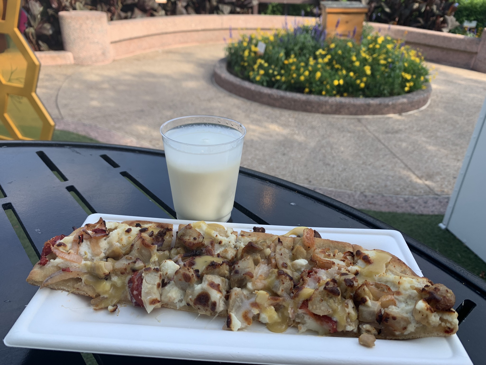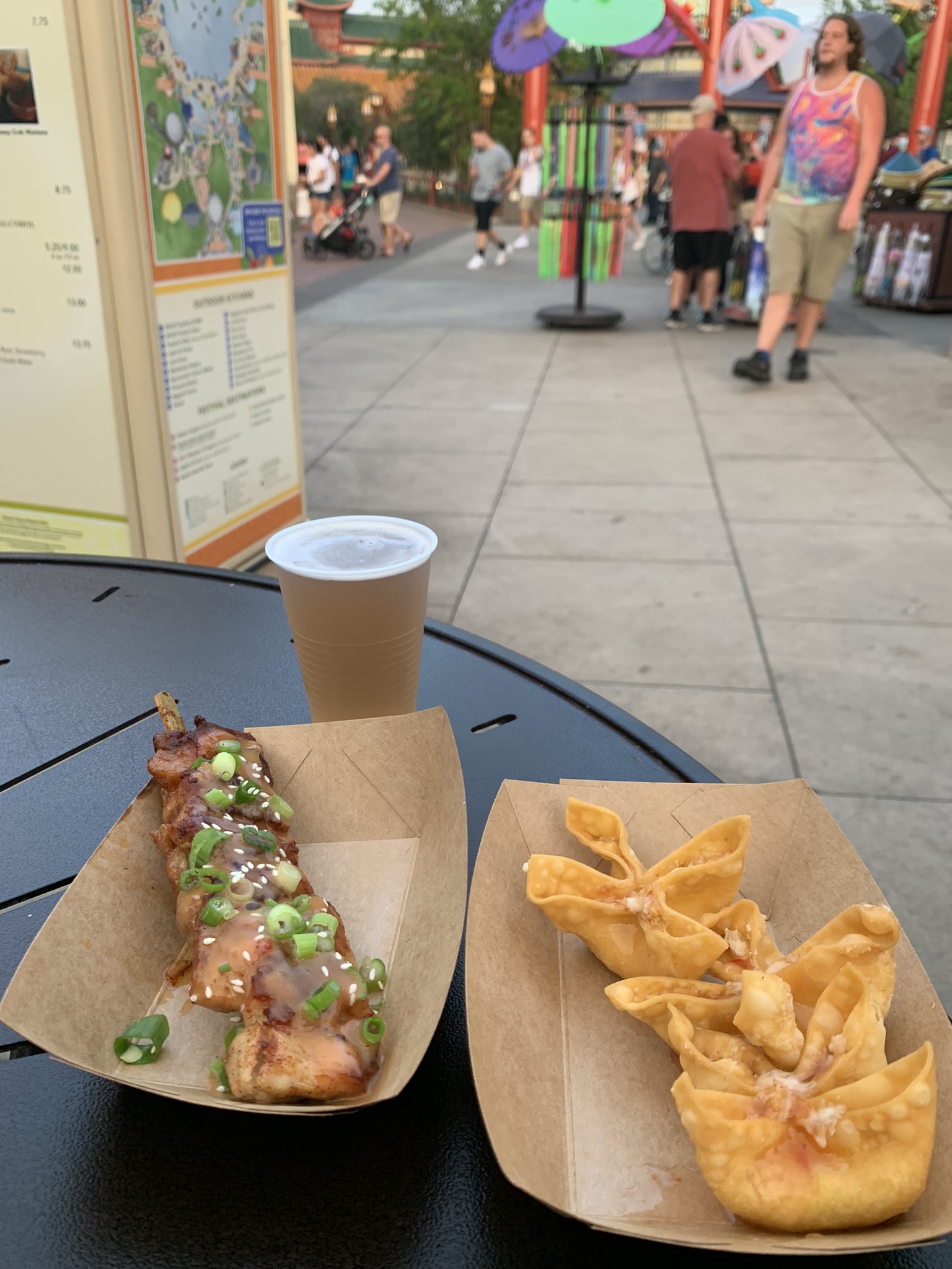 - Mala Chicken Skewer 💗💗💗 Pleasantly surprised, super moist and grilled to perfection. The flavor was sweet and spicy. It’s still kid-friendly (maybe minus the green onions). Alas, I wish Disney would stop “cheaping” out and use chicken breast meat not thigh meat.