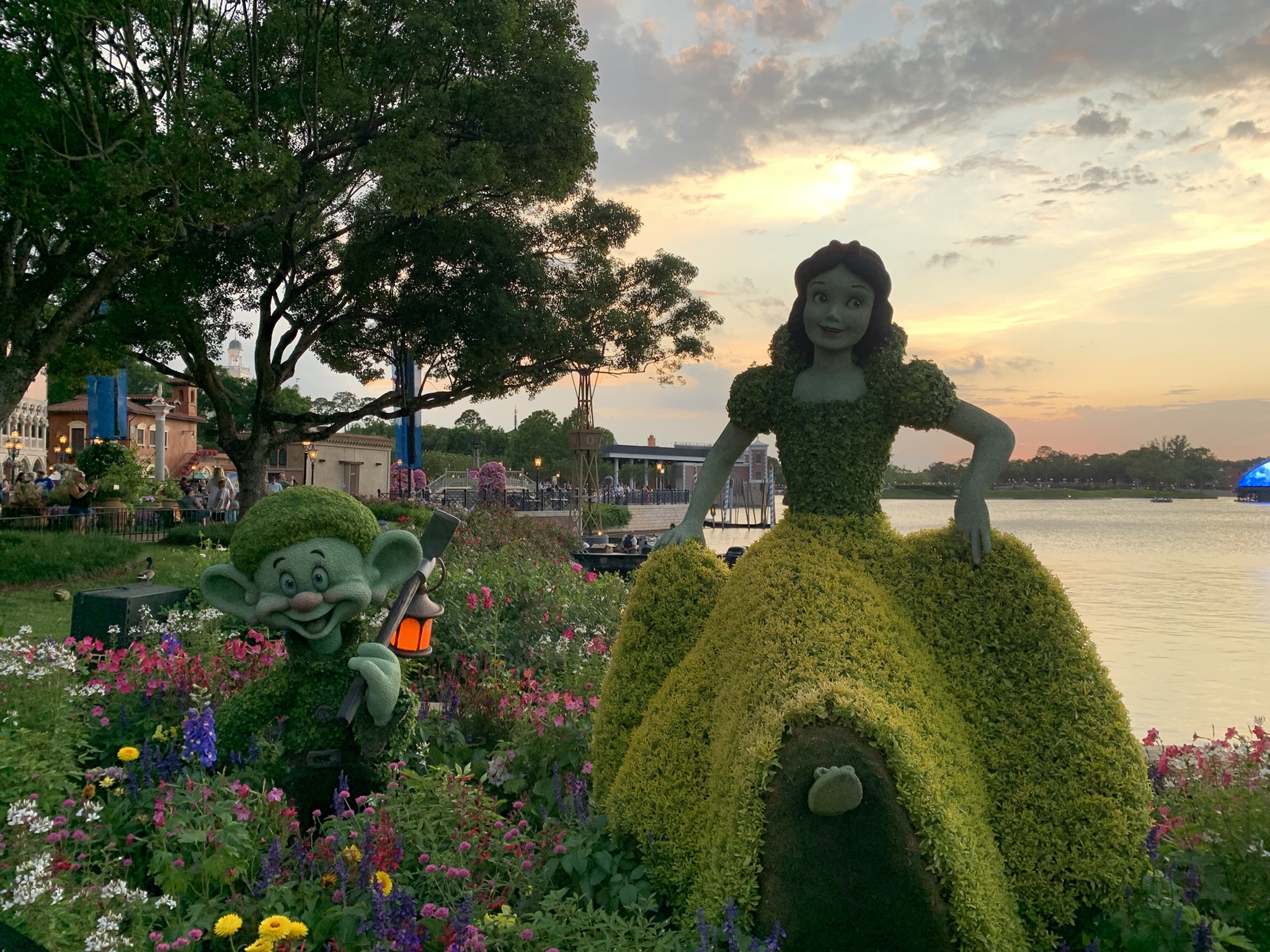 Topiaries: Snow White & the Seven Dwarfs and Kermit the Frog & Miss Piggy