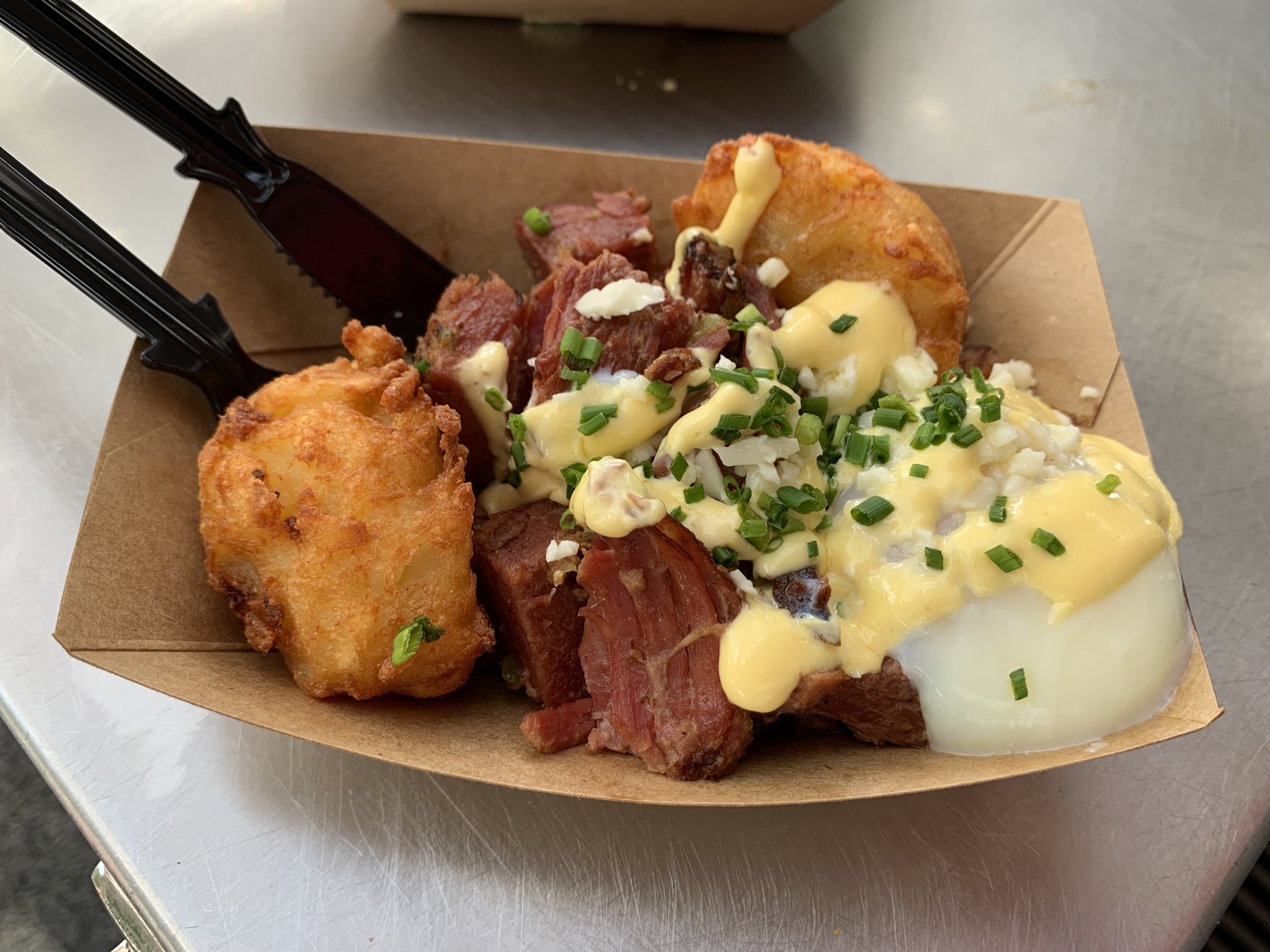 - Corned Beef Brisket Hash: with house-made potato barrels, onions, peppers, cheese curds, and soft poached egg with Tabasco hollandaise. Savory and mmmm-worthy! The flavors were happiness in my mouth. I would eat this every day! I think my egg could have cooked a tad longer, but it was still awesome. 💖💗💗💗💗