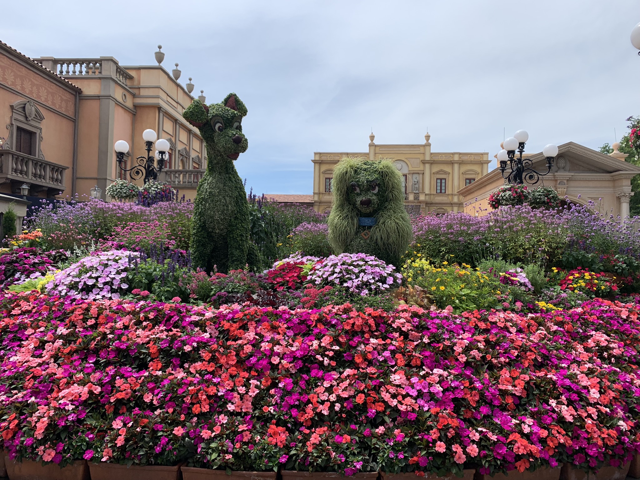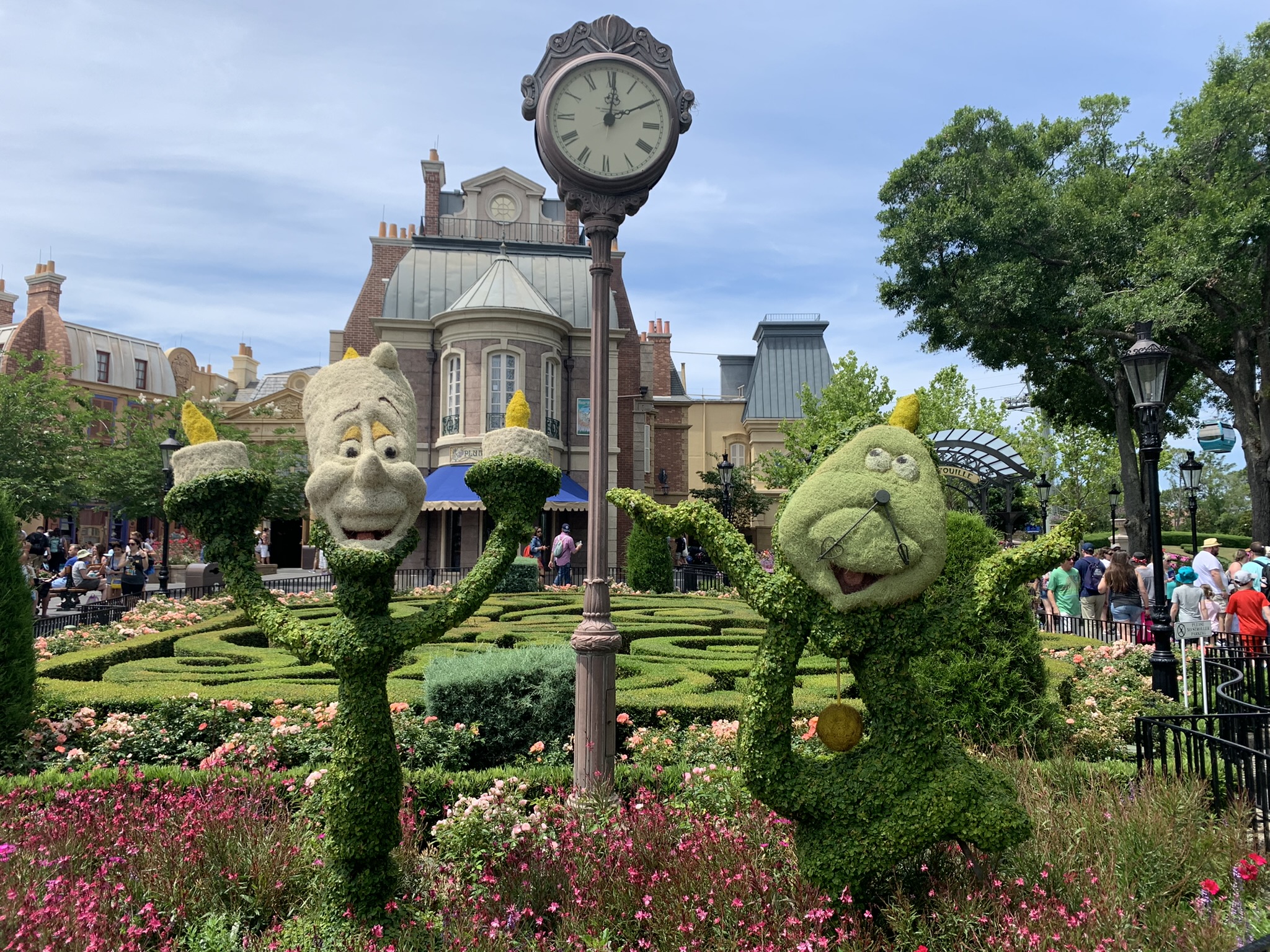 Topiaries: Remy, Beauty & the Beast, and Lumiere & Cogsworth