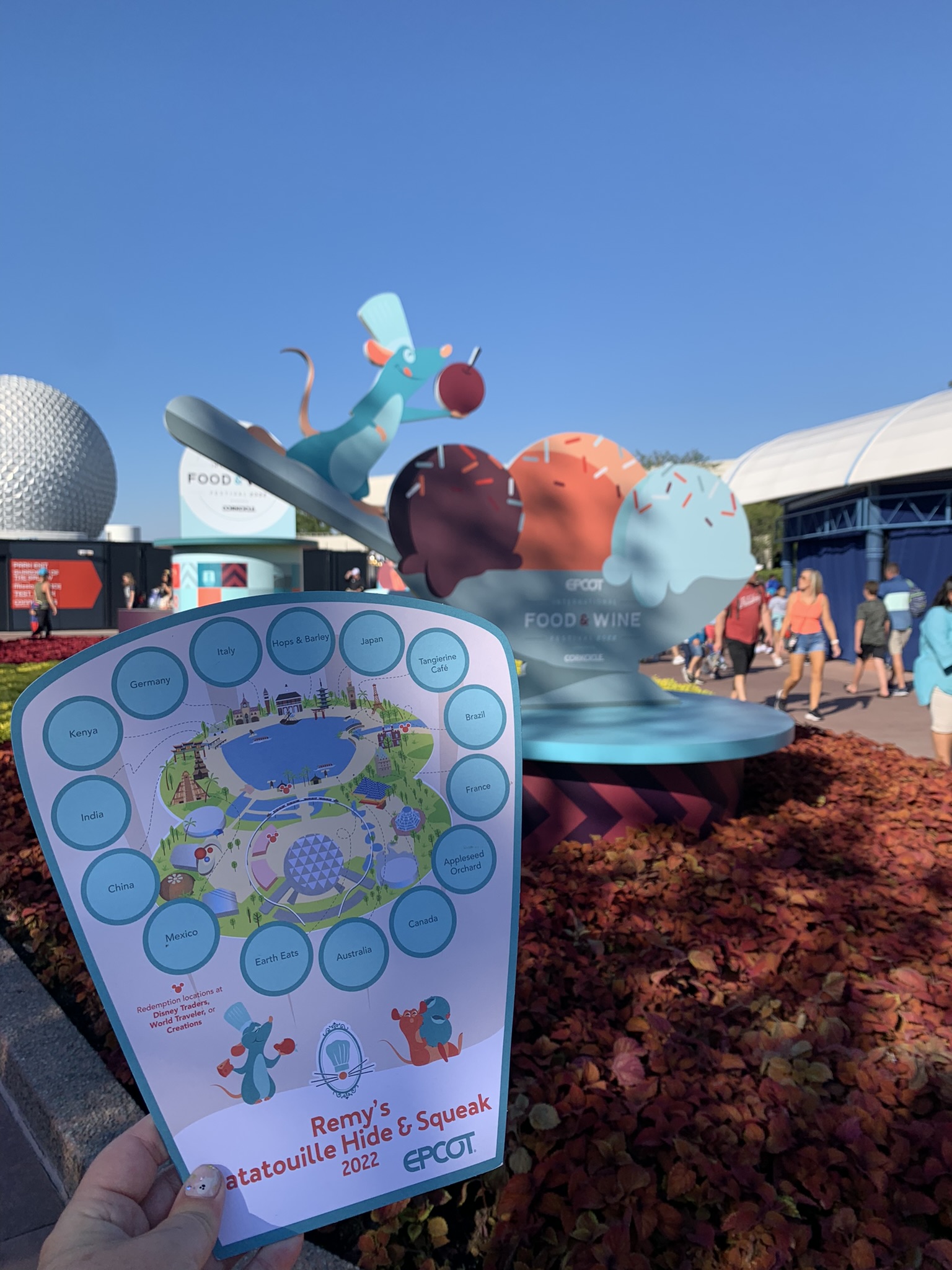 This year I participated in 2 Scavenger Hunts!! Remy’s Ratatouille Hide & Squeak Scavenger Hunt and Pluto’s Pumpkin Pursuit. $9.99 each. I thought the 🎃Pumpkin Pursuit was quite hard, I had to ask cast members for hints. Prizes for the Ratatouille Hunt were a choice between a Chef Mickey, Remy, Tiana or Figment cup: I chose Remy! 🐀The prizes for the Pumpkin Pursuit were mini “pumpkin” buckets: you could choose Pluto, Mickey or Minnie. I chose Minnie.