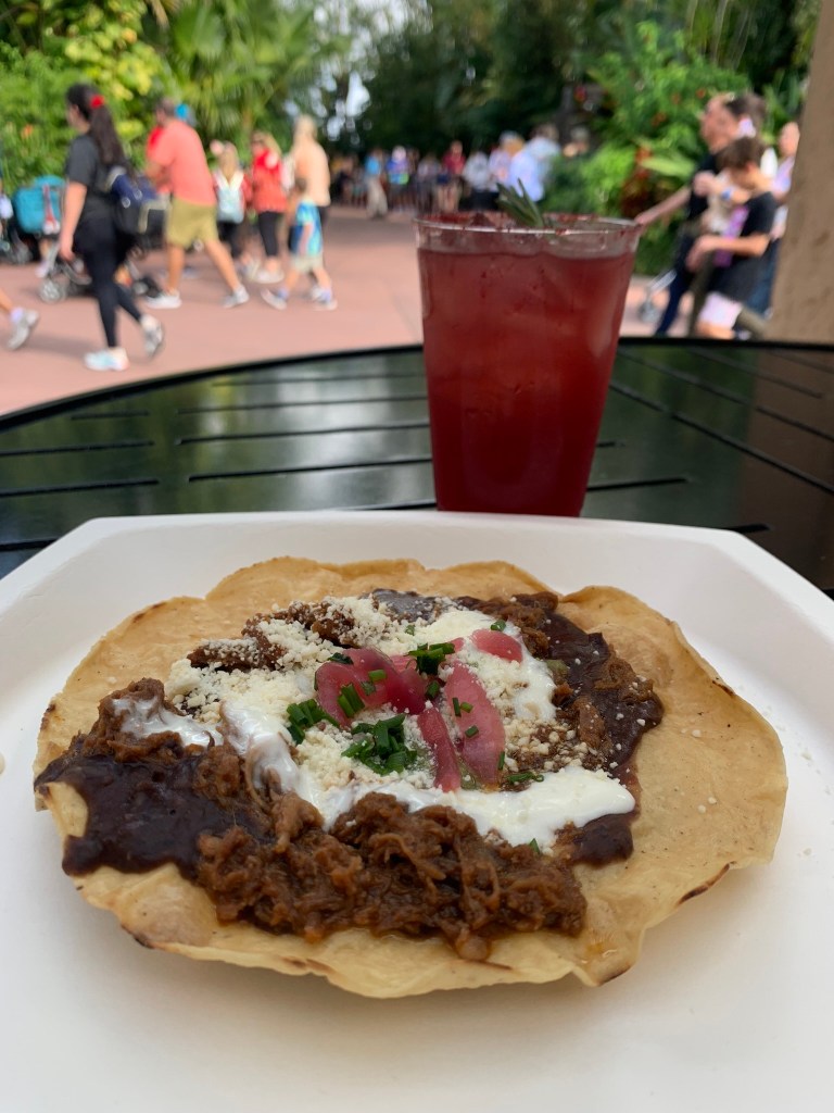 - Giant Tostada de Barbacoa: Braised Barbacoa Beef on a Giant Tostada with Chipotle Black Bean Puree, Salsa Verde, Queso Cotija, Crema Mexicana, and Pickled Onion💗💗💗💗💗-Fantastic flavors, a little kick of heat and a PERFECT snack to start my day!