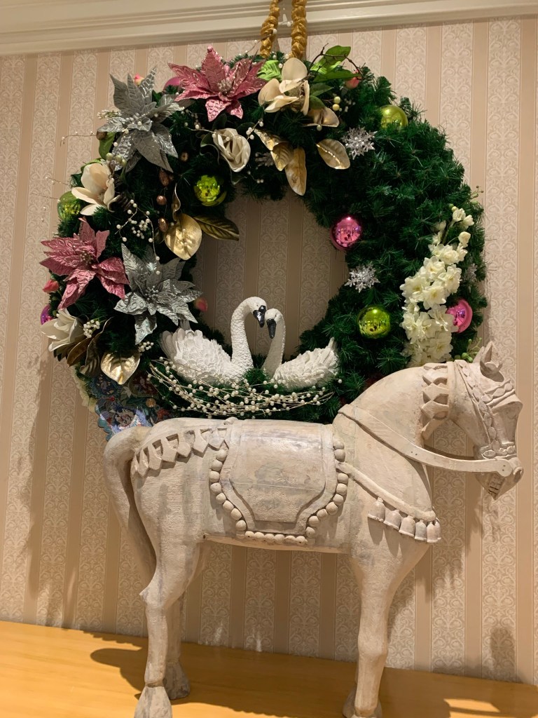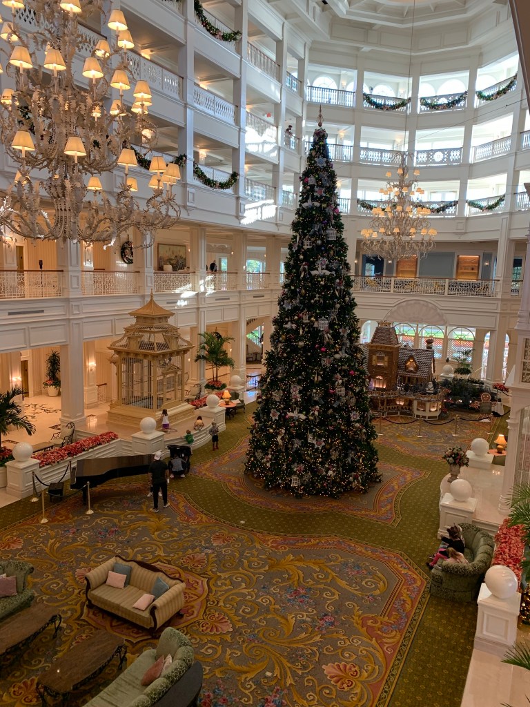 I stepped off the bus, and oh, what a sight…the Grand Floridian in all its splendor and glory! The Lobby was breathtakingly beautiful and smelled like “Christmas”. I think the scent is one of my favorite things about this resort! #facts. The holiday decorations were gorgeous and the gigantic Christmas tree…so pretty! It’s a must photo spot. Don’t forget to stop by the life-size Gingerbread house and look at all the incredible details. The gingerbread house makes the Lobby smell even more delicious. Guess what, you can even buy some gingerbread items to take home or just enjoy while you are there.