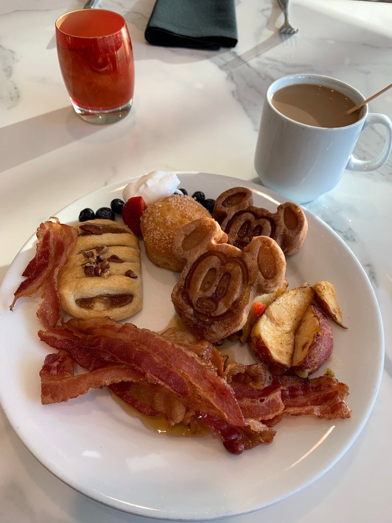 Day 2: Monday, December 13th– Early wake-up call for a private catered buffet breakfast! This time we dined inside Citricos…and it had been recently refurbished with Mary Poppins-theming! The colors and decor here are gorgeous, serene and very chic. I enjoyed Mickey Waffles and a perfect morning view. It was going to be a busy, full day. In the morning hours, we had a training session all aimed to better serve our clients & learn about all the new happenings at WDW. I learned a lot and was so grateful to our Disney facilitators: Tommy, Bailey and Mariam. Just outstanding.