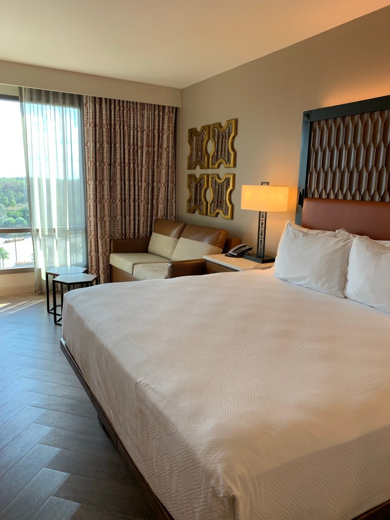 I took the afternoon to explore the resort a little bit before my check-in and first training session. On this trip, I brought along my little Remy plushie, and we sure had fun taking pics all over Disney World. He accompanied me everywhere. I was eager to see my room so away we went. It did not disappoint. Elegant, luxurious and beyond beautiful…it was love at first sight. The color palette was full of rich golds, creams and reds making you feel like royalty. My favorite thing… the BED! I slept like a Princess, obviously. Enjoy this room tour/walkthrough. *Since this visit, the rooms have been refurbished. You’ll find a Mary Poppins theme with lighter colors: white, pale blue and rich teal green.