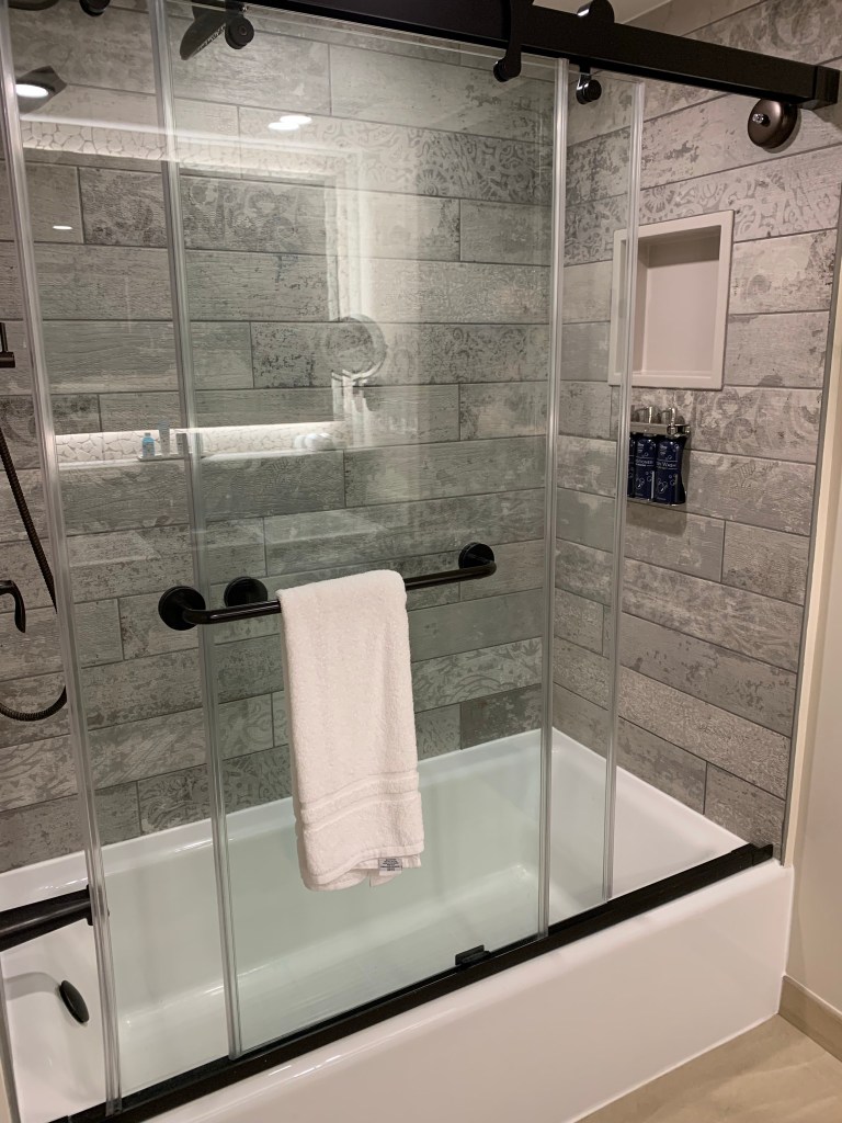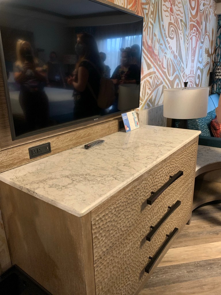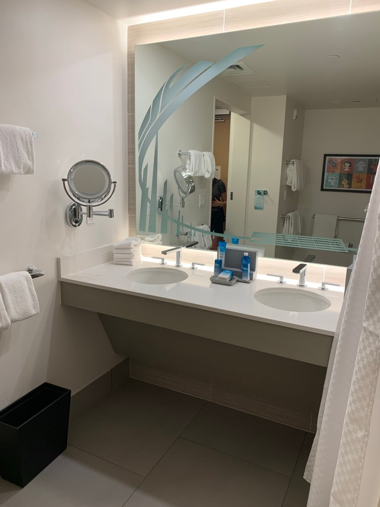 After our lunch, we visited 5 Disney Resorts: Coronado Springs (Gran Destino Tower), POP Century, Art of Animation, Contemporary and Polynesian Village. I really enjoyed the room tours. I love being able to share my personal experience with my guests. So please, have a look at the photos and videos! I’m still dreaming about that over-the-water Bungalow at the Poly! If you have a chance, visit with the Disney Vacation Club and get a tour! You’ll often get a free swag bag.