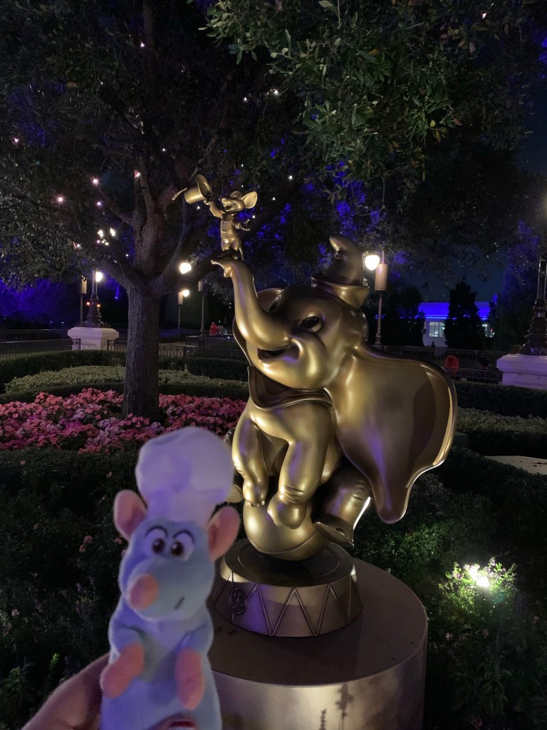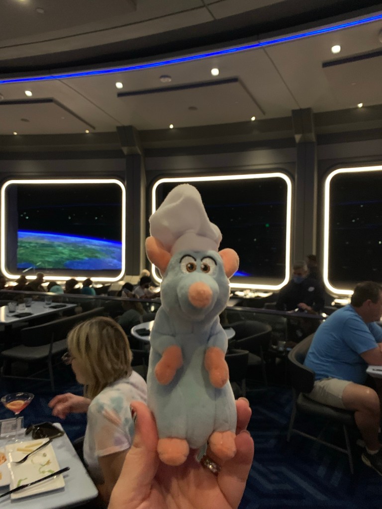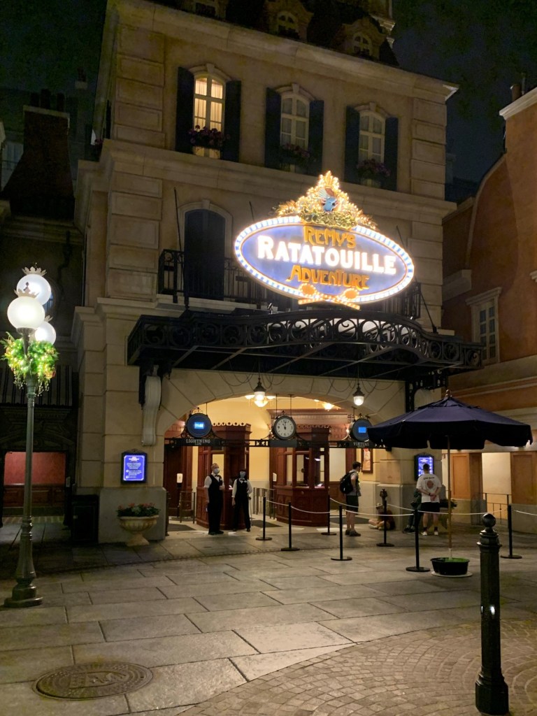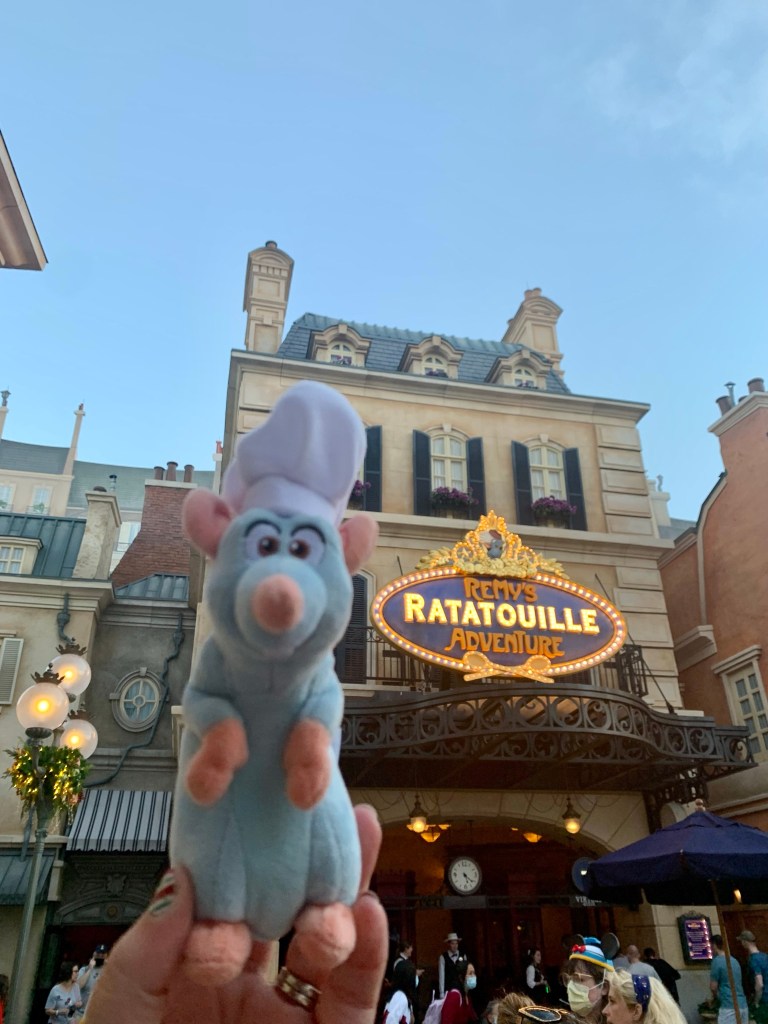 Spaceship Earth was shimmering and sparkling all night long! I took some fantastic photos! Now, I only had 2 hours, so I went straight to Test Track. After that, we trekked to France to ride Remy’s Ratatouille Adventure. I just love this attraction, it’s so much fun and oh-so-cute. As a pet rat owner, it has my heart. Remy and I ventured to Soarin (rode it twice!) to close out our night. I walked out of EPCOT a little after Midnight. I was back in my hotel room by 12:30 am, quick shower and then ZZZZZ.