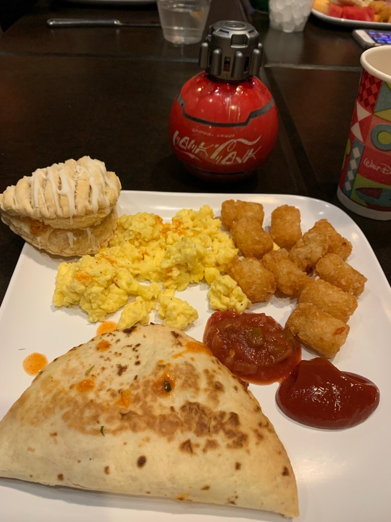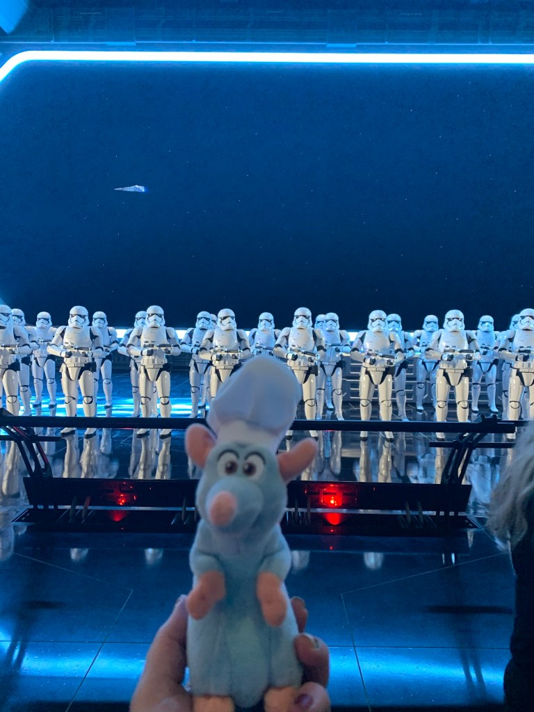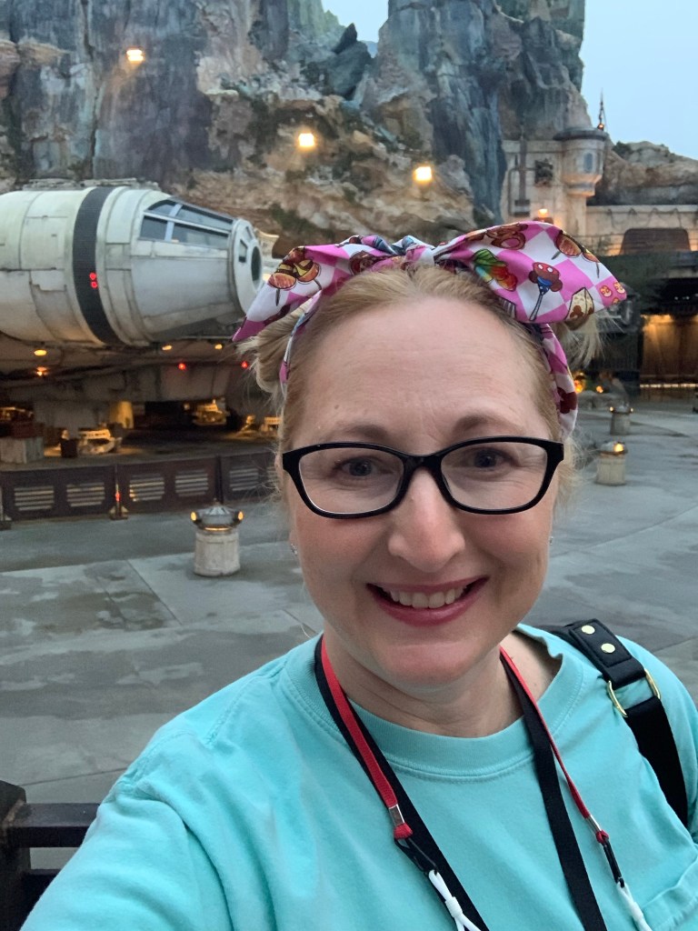 Day 3: Tuesday, December 14th– Rise and Shine! We had a very early meet time, 6:30 am! Off to a Hollywood Studios, before the park officially opened! This just gets better and better. We had another yummy private catered buffet breakfast. This time we ate inside Docking Bay 7 in Galaxy’s Edge. I was geeking out! I’m a big Star Wars fan and walking into Batuu with zero people around was freaking cool. Now, here comes the galactic wish come true…we got to ride Rise of Resistance…as the very first guests of the day! When we finished breakfast, the line for Rise was already extending out of Galaxy’s Edge…and our crew got to sneak in via a special entrance to the FRONT of the line. Epic.