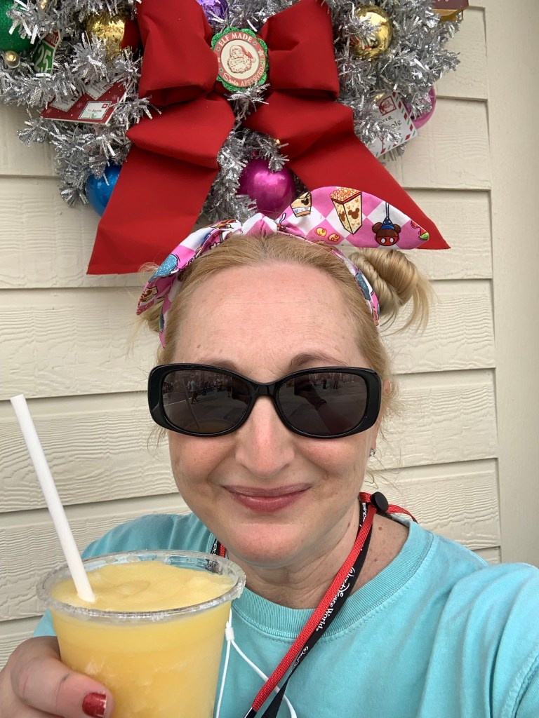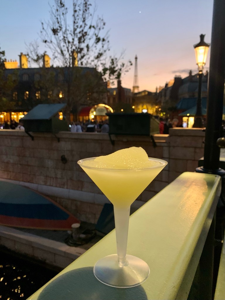 I made a quick outfit change & donned my Minne ears before I hopped on the monorail to EPCOT. I lucked out and got a Space 220 Lounge reservation for 4:15 pm. What an experience! I loved every second of it. I enjoyed some Blue Moon Cauliflower (fried cauliflower w. buffalo sauce & blue cheese crumbles) & a Stargarita (sweet, sour space-y margarita) before I went back to Earth. 100% recommend. After my little happy hour, I explored the Festival of the Holidays. I rode Remy’s Ratatouille Adventure, again. Grabbed a Grey Goose Limon Slush on my way out of France. Bonjour! I took my time making my way back to Mexico and stopped in La Cava for a margarita before our last AEP group dinner. Best margaritas ever. Salud!