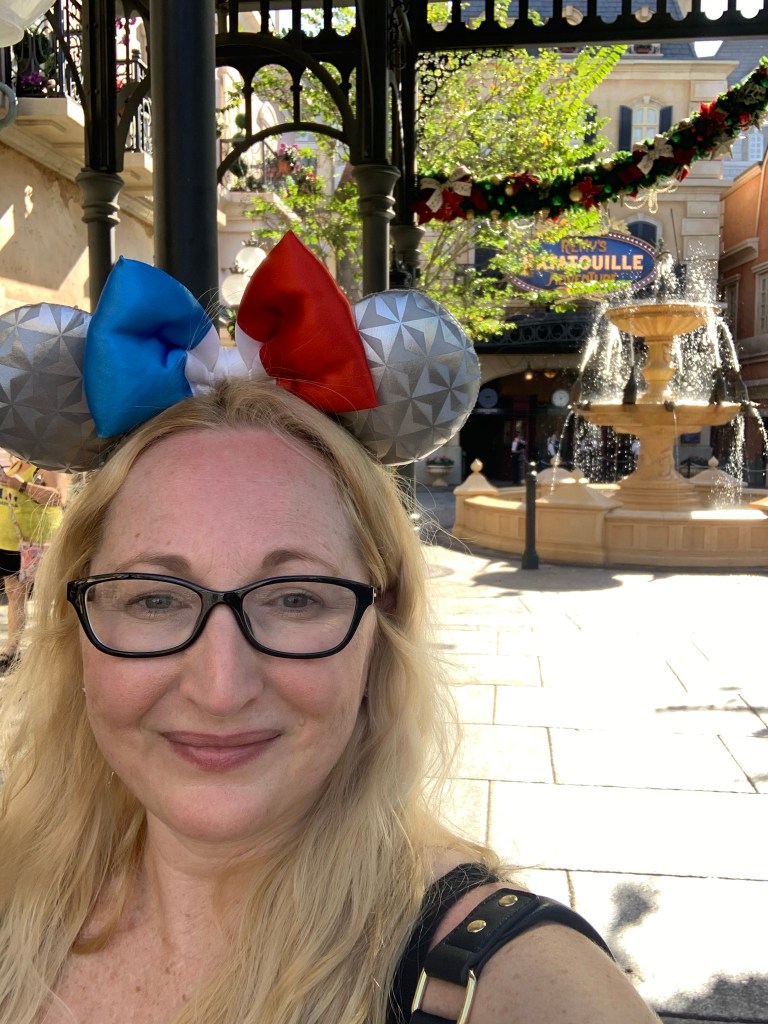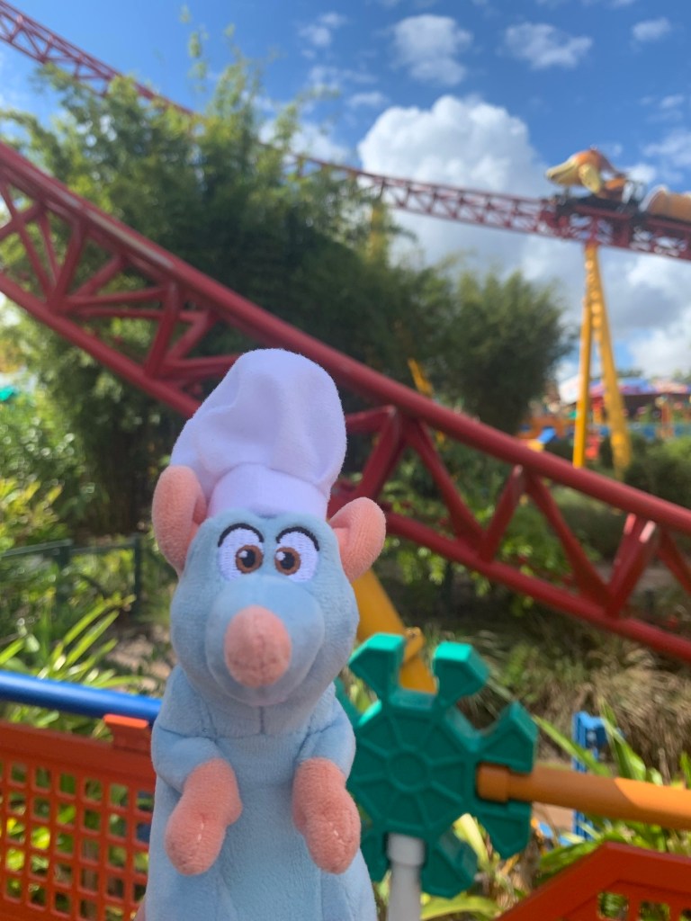 We had the rest of the day to ourselves, so naturally I spent it at Hollywood Studios. Again, Disney Genie+ enabled me to ride a lot before I headed to EPCOT later in the afternoon. I rode Smuggler’s Run via Single Rider Line. NO Wait. Squeezed in Toy Story Midway Mania, Aerosmith Rock n Roller Coaster, and Tower of Terror. Remy loves Hollywood Studios! We also saw some friends like Goofy & Max, Woody & Buzz and Mickey & Minnie. My lunch consisted of a Mickey Pretzel & Margarita from Sunset Market…it’s a tradition. I also enjoyed an oh-so-delish Reindeer Mousse treat from Trolley Car Cafe on my way out of the park. I headed back to Grand Floridian about 2 pm.