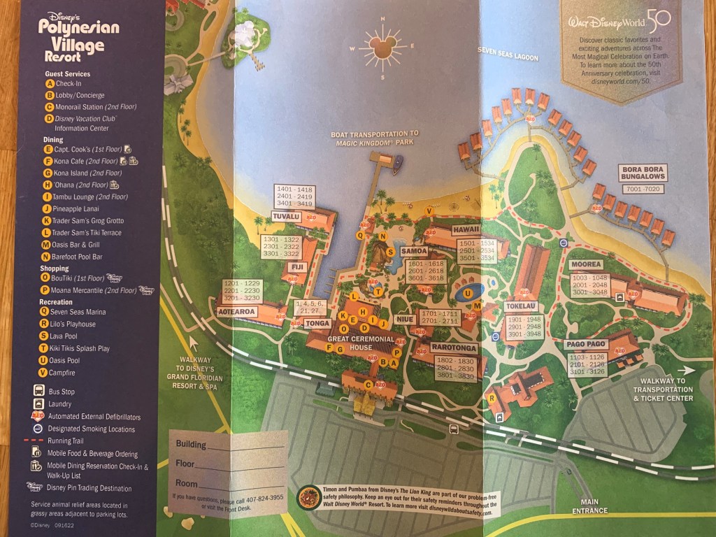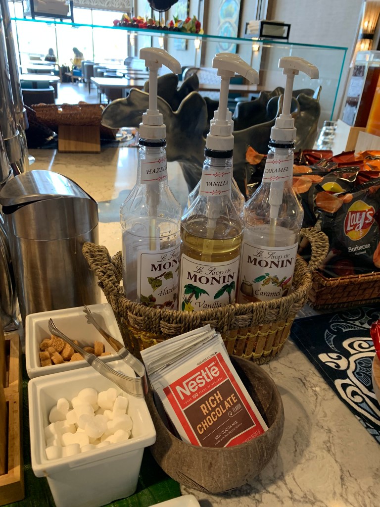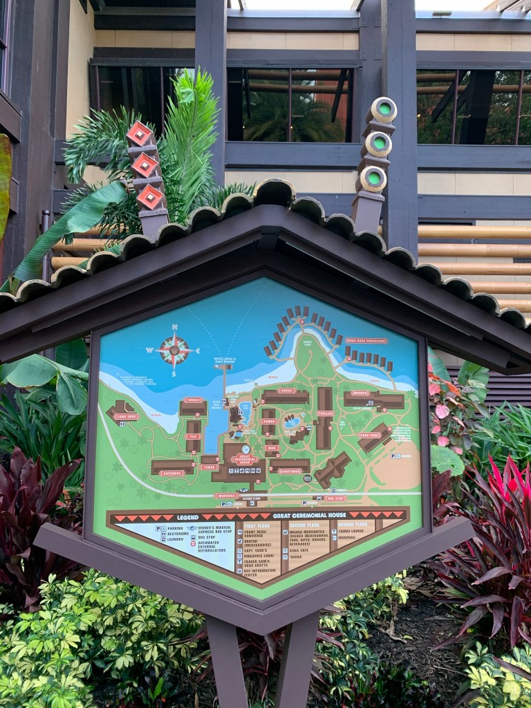 🌺One oh-so-convenient thing about the Polynesian’s Club Level rooms is that most of them are in the same Longhouse: Hawaii. Hawaii is centrally located within the Polynesian Village Resort making it easy to get to the Ceremonial House, Pools and Transportaion. Since this longhouse is for concierge guests only, you will need your MagicBand to enter. Upon entering, you’ll see the concierge desk. This room is very welcoming with so much to look at. The concierge team is there to offer assistance, answer questions and make your stay feel extra magical. Do take advantage of their services. You can also pick up park maps! I sure did.