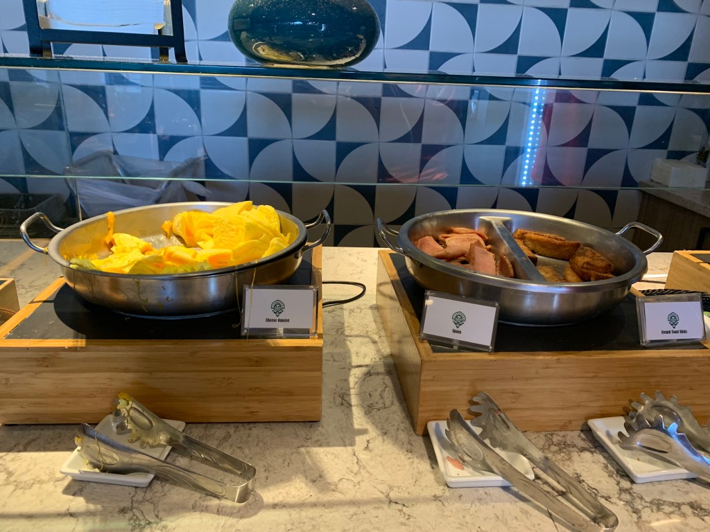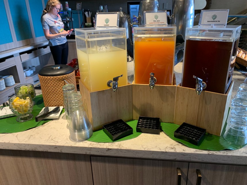 So many yummy things to eat! Assorted Pastries (white chocolate macadamia nut muffins: LOVE), assorted cereals, breads & bagels, juices (yes, POG juice), assorted fruit, yogurt, oatmeal with toppings, cheese omelets, spam, French toast, hard-boiled eggs, and coffee/tea including a Nespresso machine! Milk and Water also available. For the grown-ups, Mimosa or POGmosa!! I enjoyed my fair share of the POGmosas. 🥂