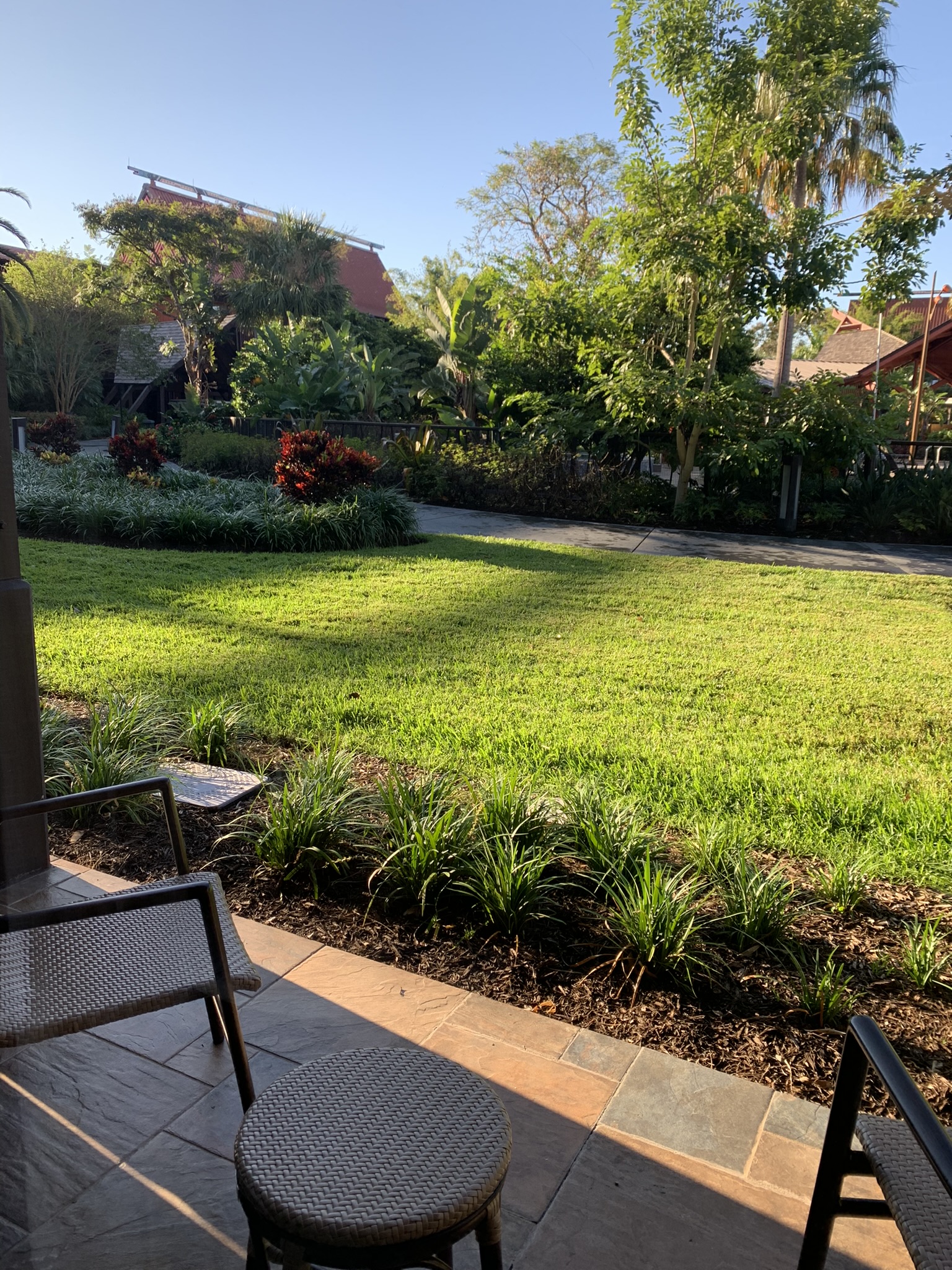 Okay, let’s talk about my ROOM! 💚MOANA themed!! I booked a garden view room which has 2 Queen Beds and 1 Sleeper Sofa. Perfect for me and my 2 Travel Agent Pals. We had a lovely, peaceful view. Sitting out on the little patio was paradise.