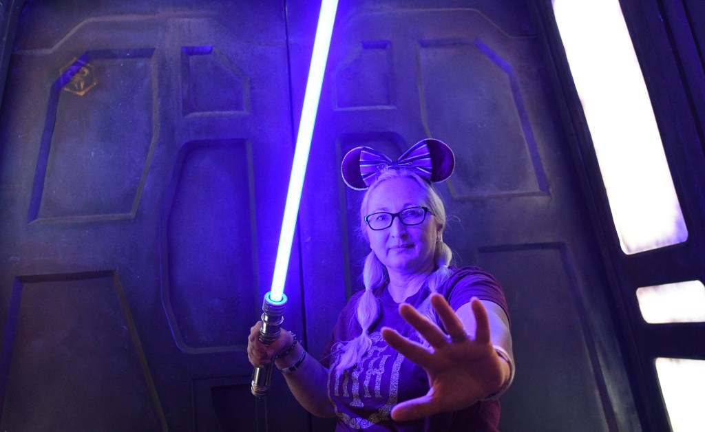 My D2 Travel pal and I decided to grab a quick bite to eat from Docking Bay 7 to get our adventure started. Ronto Wraps are one of my favorite eats at Hollywood Studios. Roasted Pork, Grilled Pork Sausage, Peppercorn Sauce, and Tangy Slaw wrapped in Pita Bread. So much flavor and just the right amount of food…I had to save room for all the free treats! On our way to Oga’s Cantina, we saw a really cool Photopass spot: with Lightsabers! After our “jedi photoshoot”, we headed inside Oga’s Cantina for a drink. I enjoyed my Bloody Rancor-Tito’s Vodka, spicy Bloody Mary Mix and Rancor Bone (meringue). I love Oga’s, however be prepared for pricey drinks and a 45-minute max time limit. Also, to note Oga’s only serves a few snacks & a unique charcuterie board. That’s it for food. But it’s really so much fun here & the theming is incredible. If you’re a Star Wars fan, it’s a MUST visit at least once.