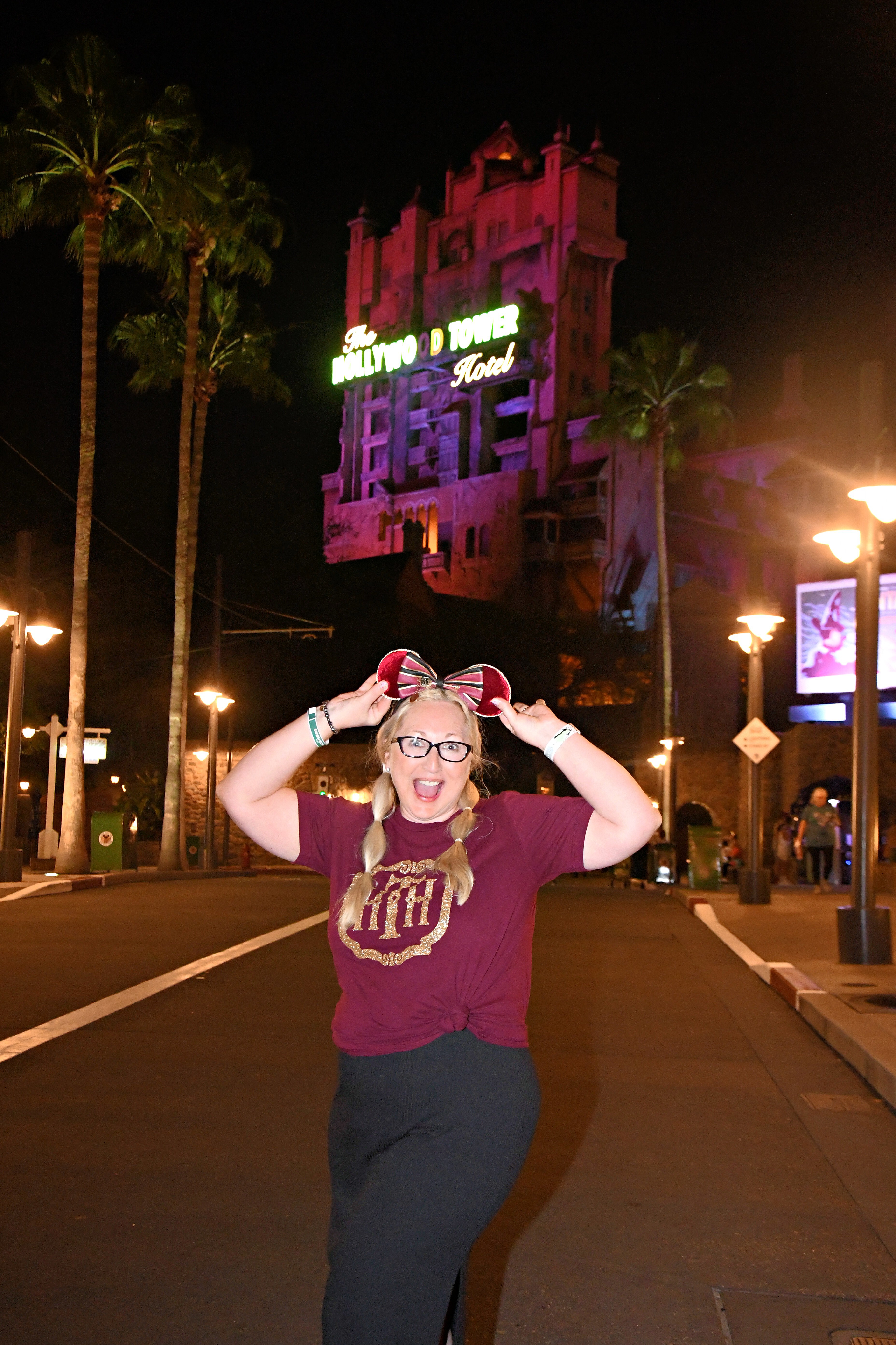 After our little break, we headed down Sunset Blvd to Tower of Terror! This is my FAVORITE attraction at Hollywood Studios. Again, we walked straight on…ZERO Wait. Fabulous time for photos with an almost empty park!