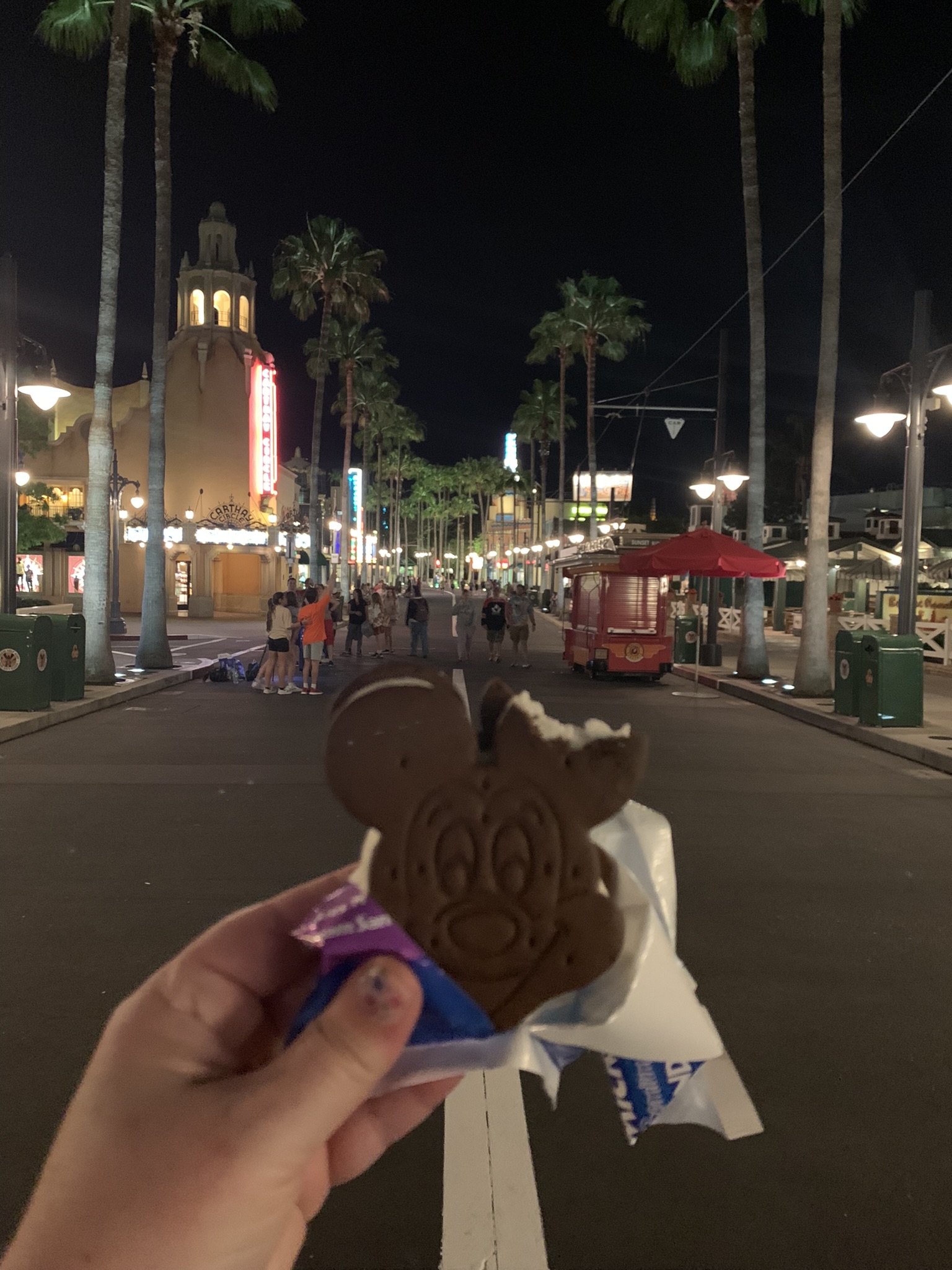 After we dropped in, we snagged some yummy Ice Cream treats!! My friend got the classic Mickey Ice Cream Bar, and I got the Mickey Ice Cream Sandwich (Oreo ice cream!). Sooo good!! The best part: you can have as many as you want all night!