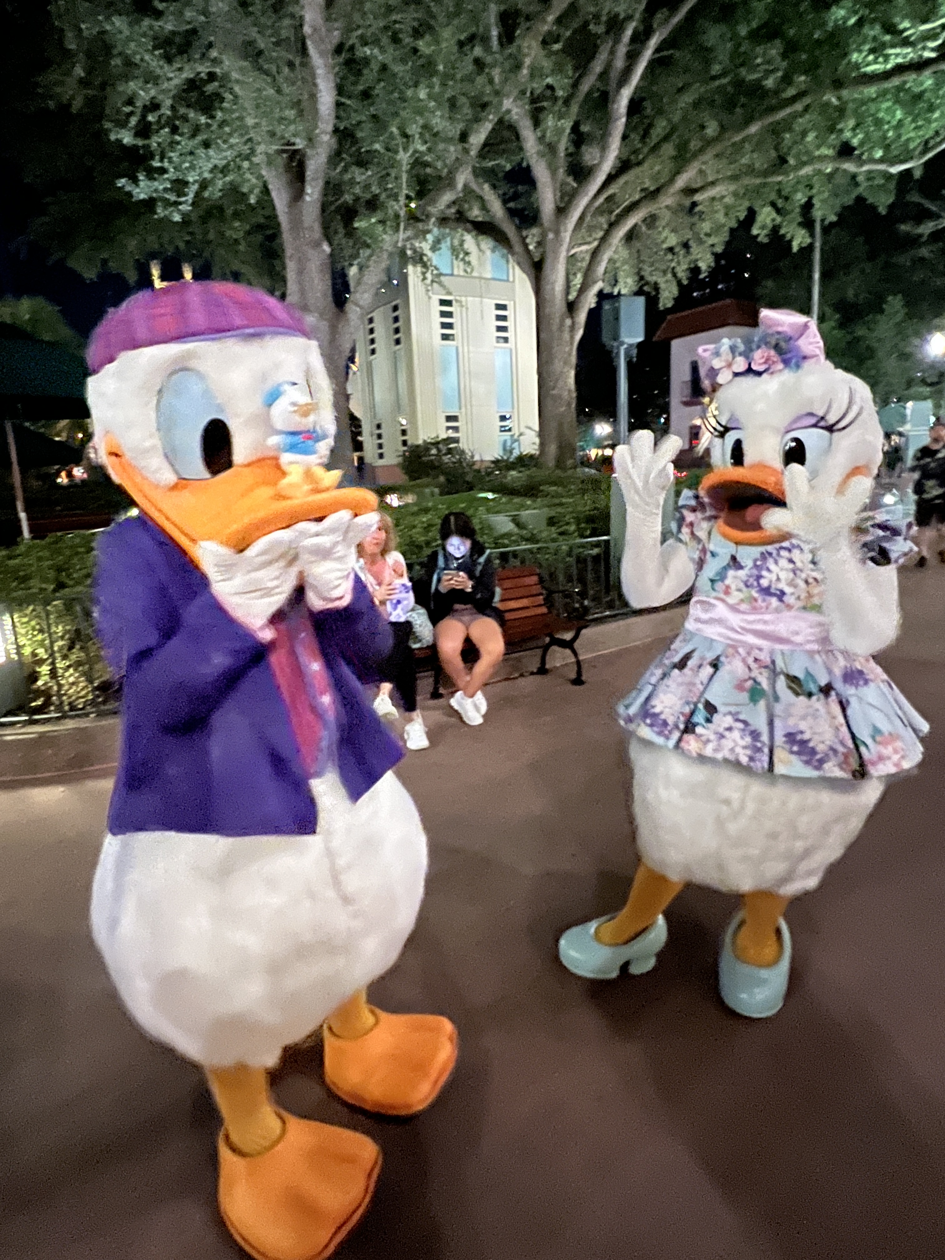 As we were making our way to ride Star Wars: Rise of Resistance…we spotted Donald & Daisy in the cutest outfits ever! Omgeee!! My little Donald Nuimo was a hit! 💜PRO TIP: Get yourself a nuimo, characters love interacting with you! I really wished there were some actual meet & greets…we just happened upon Donald and Daisy. Sheer luck! We were told Bo Peep was meeting guests near Toy Story Midway Mania, but times weren’t announced. Basically, the idea is to “surprise” guests. We heard the same about some Star Wars characters that were supposed to roaming Batuu but never saw any.