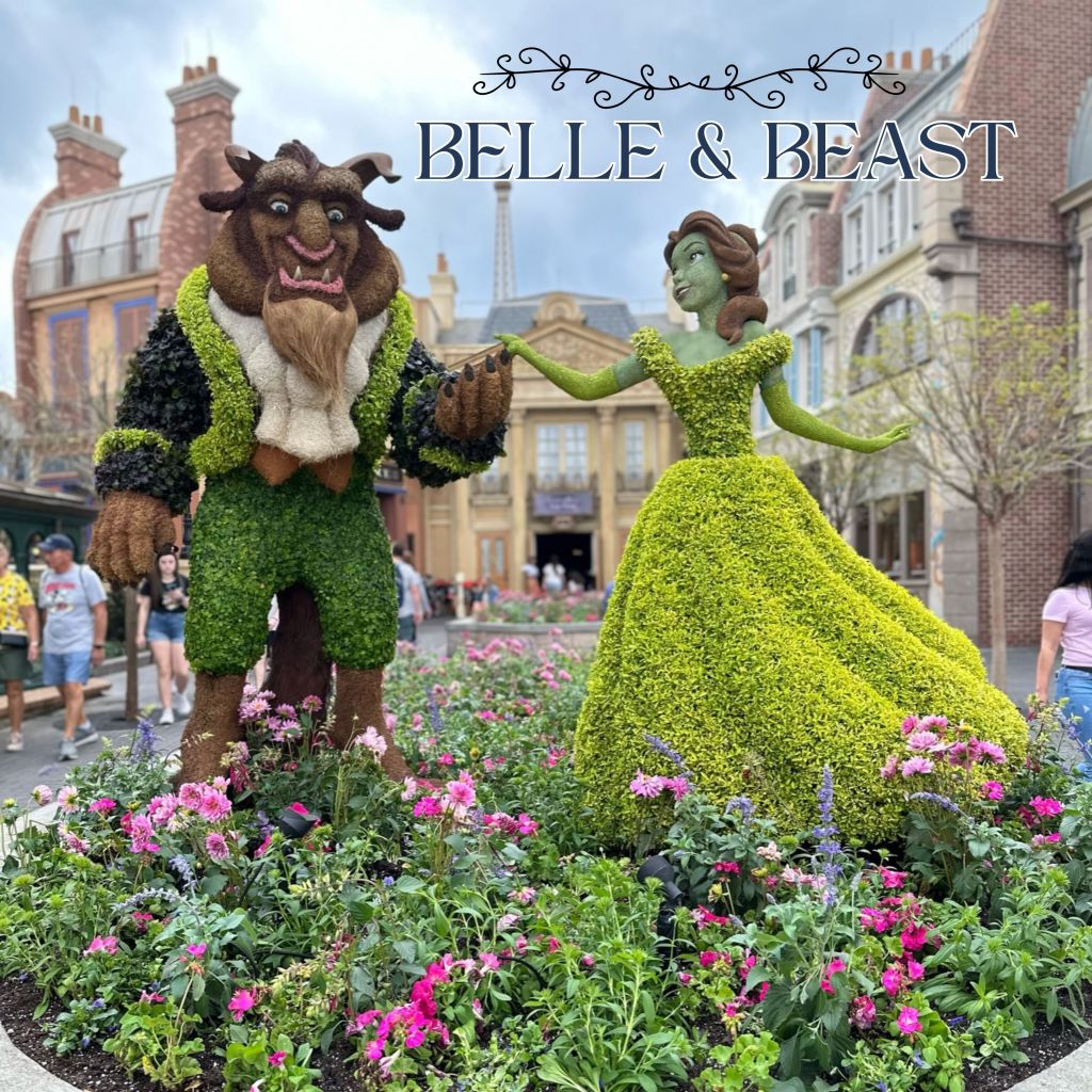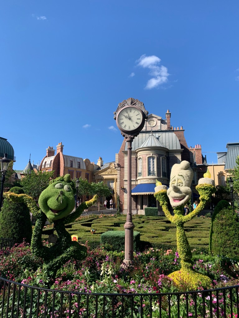 Topiaries: Beauty & the Beast, and Lumiere & Cogsworth