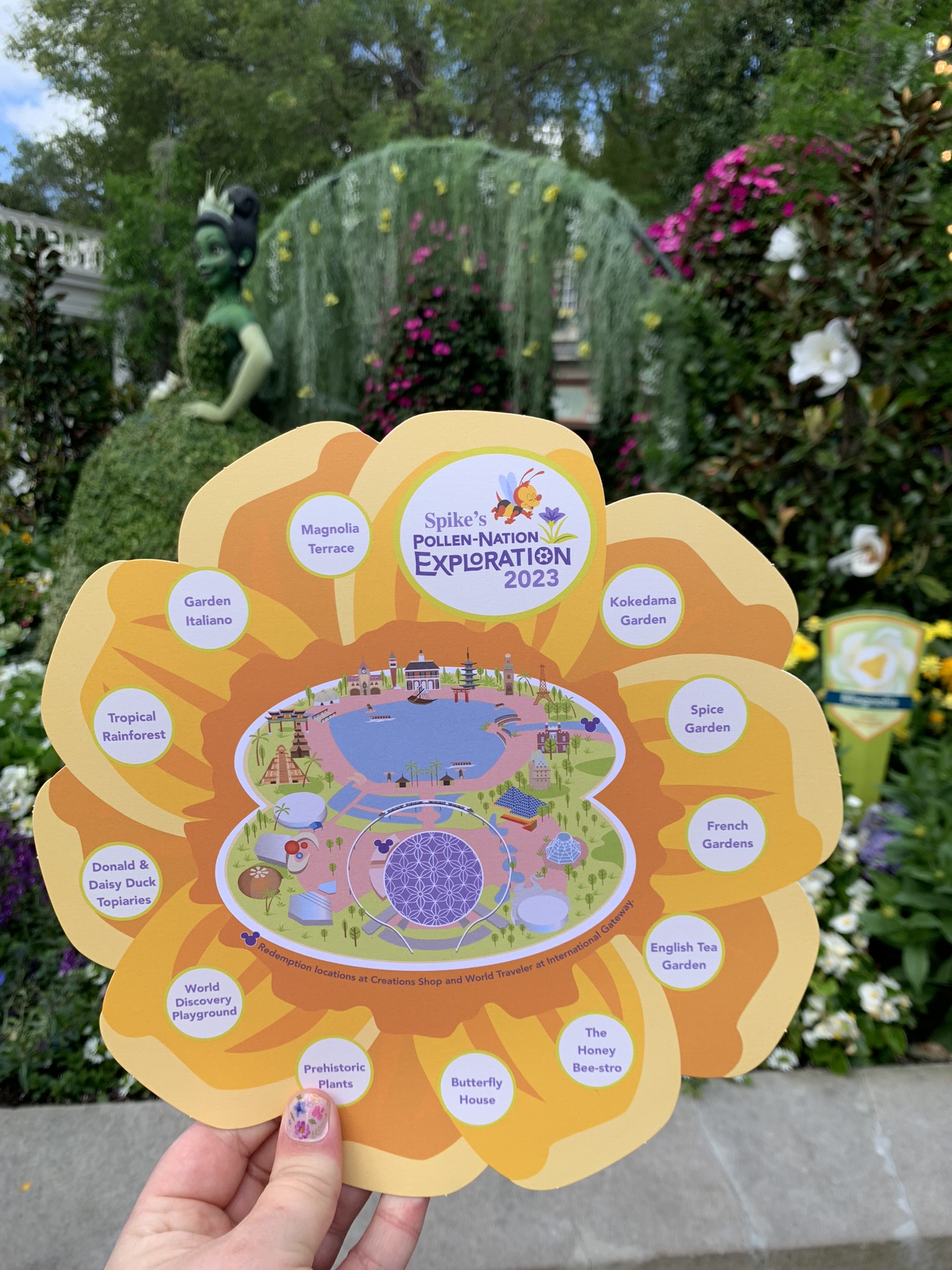 PIXIE PRO TIP: Prior to your trip, make a list of some of the Food Booths and menu items that you’d like to try. When you get to EPCOT, grab a Flower & Garden Festival Passport and start your tasting adventure! ~ I also recommend purchasing a re-loadable wristlet gift card, such a cute souvenir & really helps to keep you on budget.