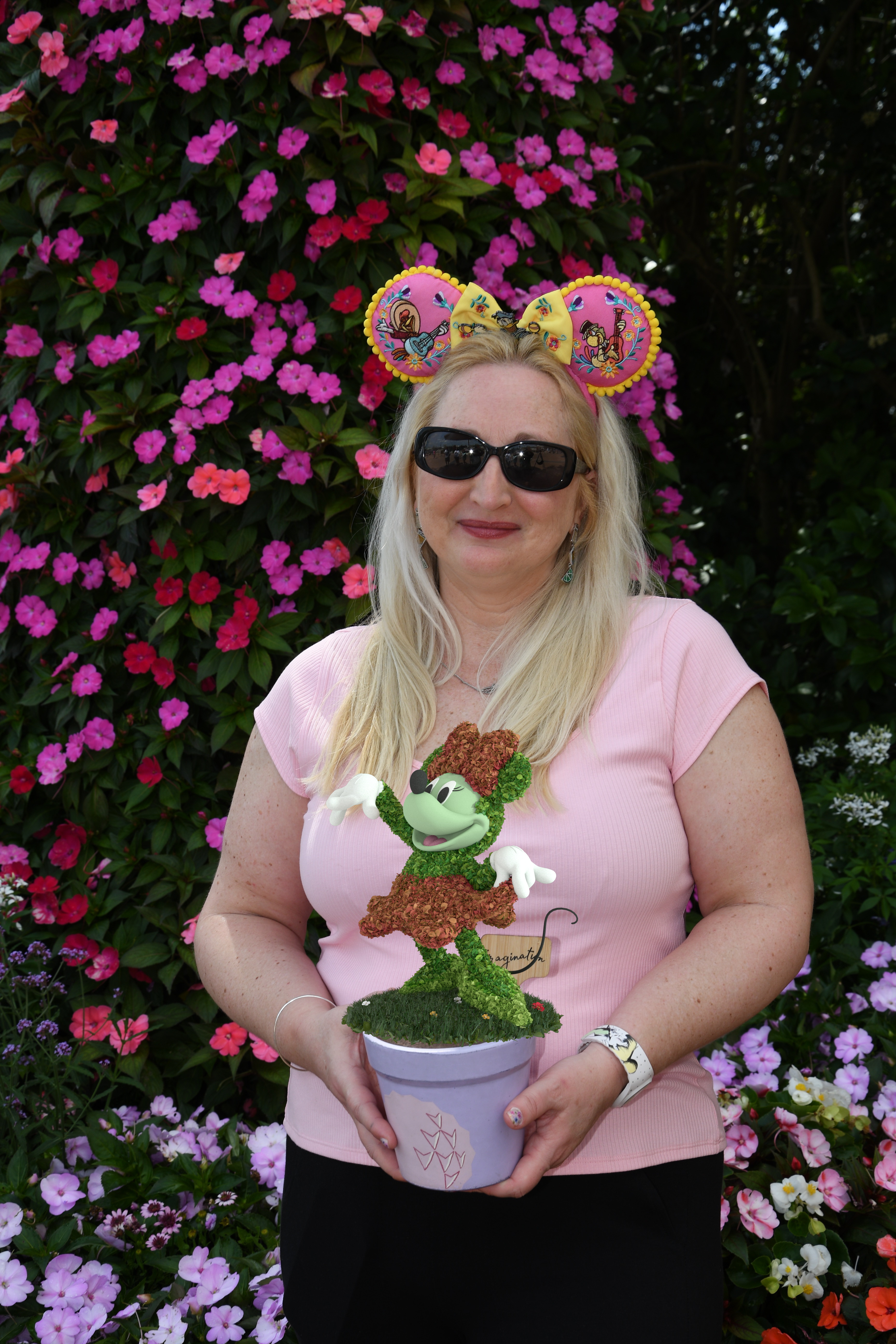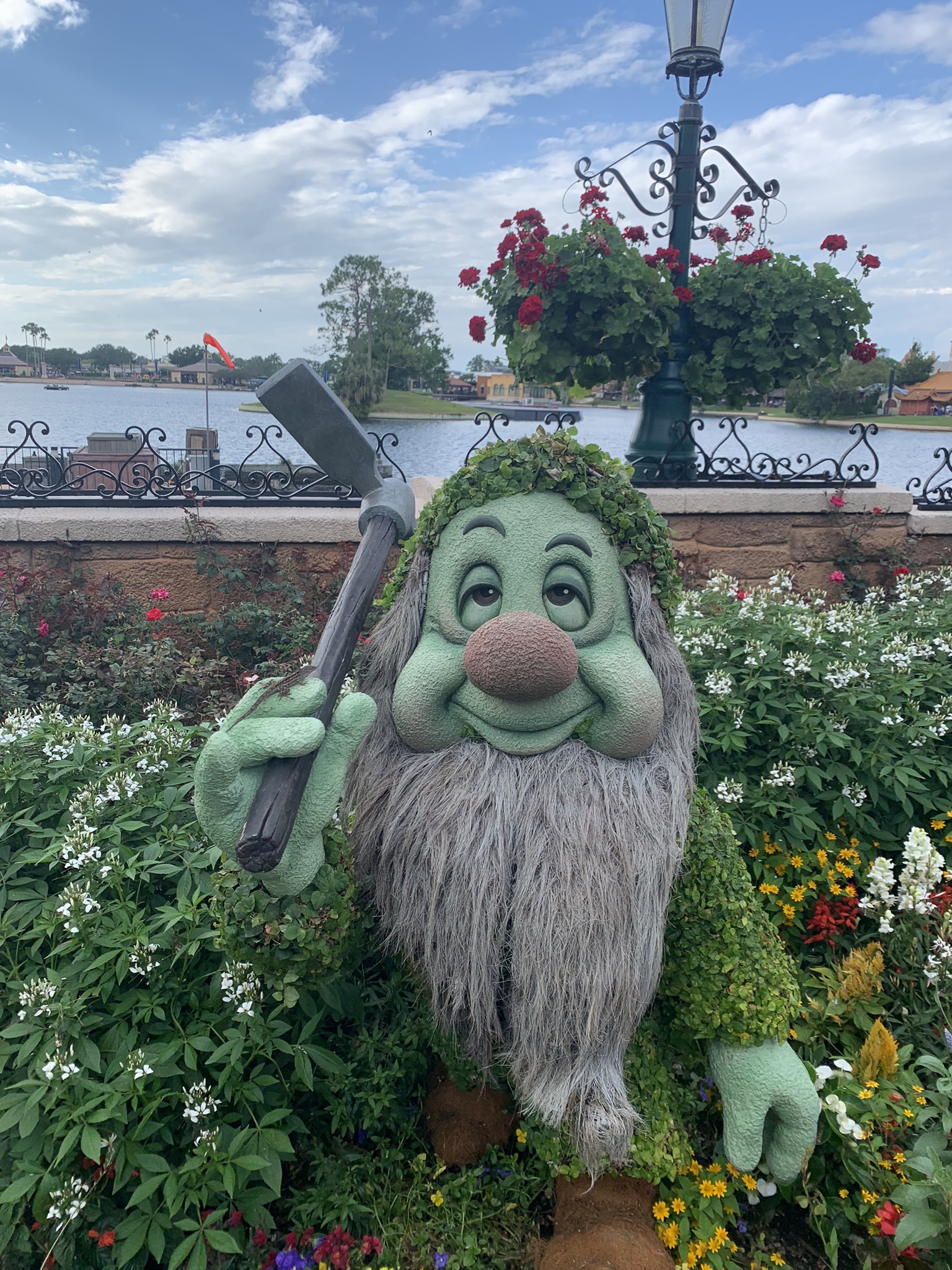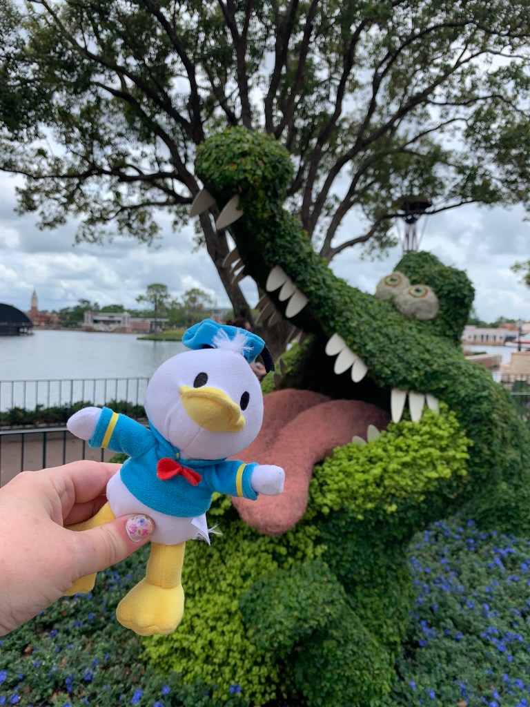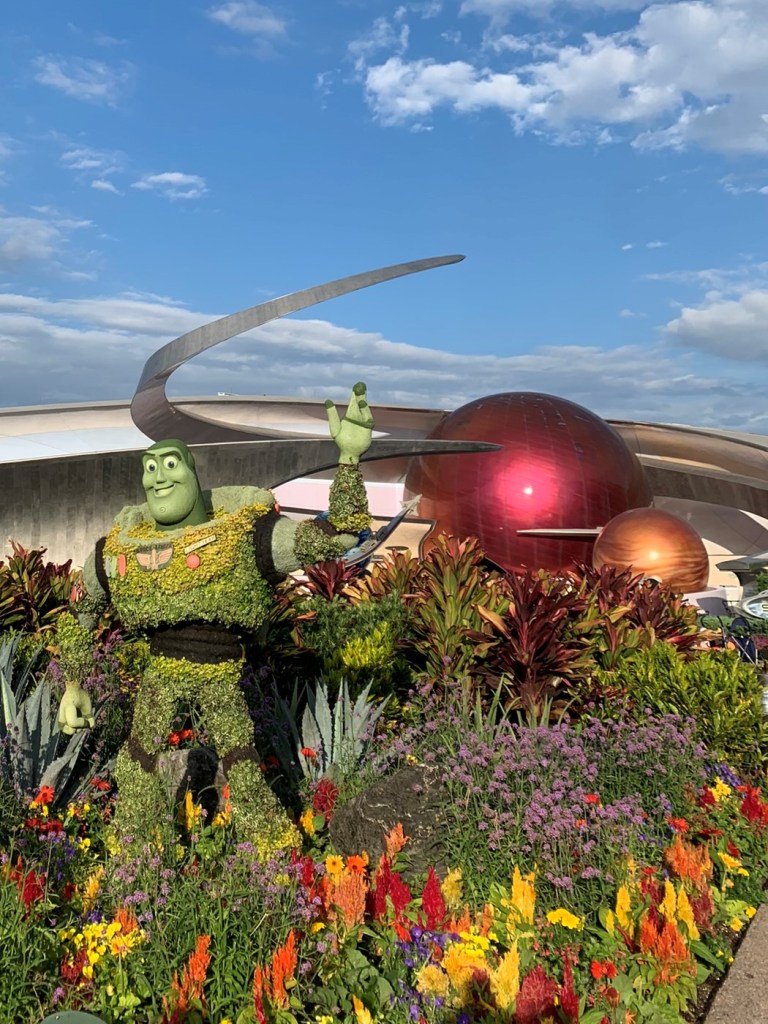 I visited WDW mid-April and of course, enjoyed a few visits to my beloved EPCOT including the Flower & Garden Festival. It was a lovely time to visit, not too busy at all. The weather was high 70s/low 80s, and the humidity was low/moderate. As I mentioned, my last afternoon was rainy…so that put a little damper on my festival taste test. But overall, it was a great week.