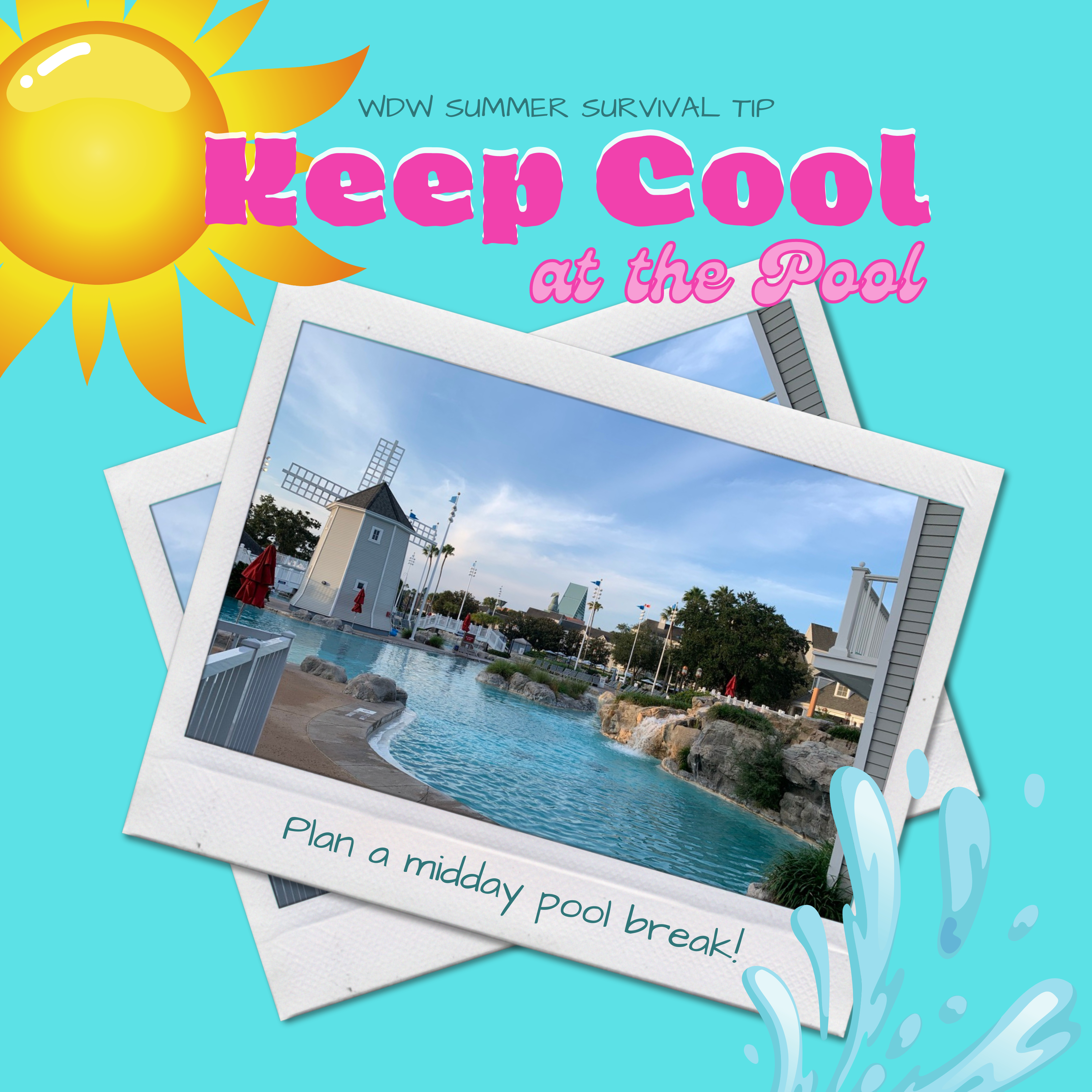 - Schedule a POOL Day or Take Mid-day Breaks!! This is probably my TOP and favorite way to stay cool. If you stay in the parks: find SPLASH pads! EPCOT & Magic Kingdom have 2 fantastic splash pads!