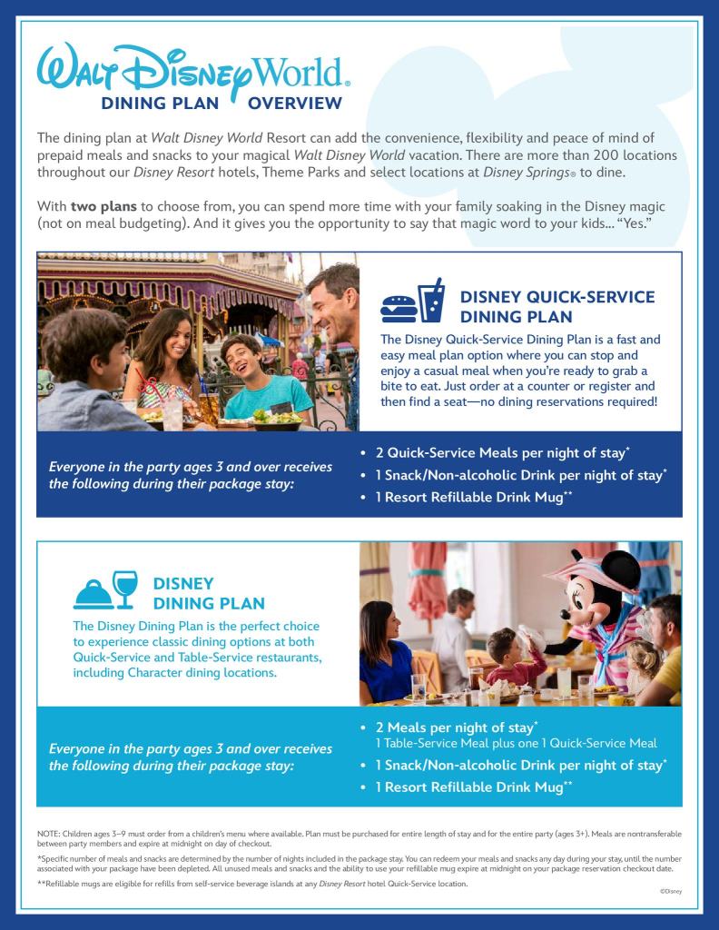 Disney Dining Plans: Add to your Vacation Package for arrivals beginning Jan. 9, 2024. Each guest in your room must have the same dining plan. Ages 3+.