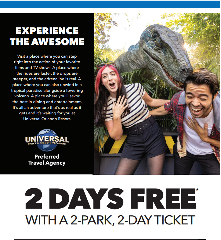- Buy a 2 or 3 park ticket and get 2 Days FREE!
