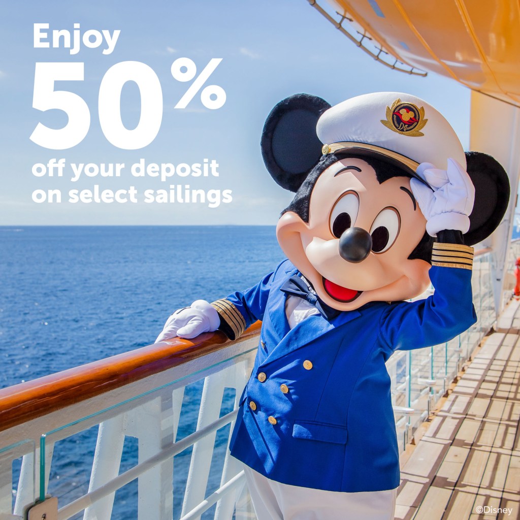Book select Disney cruises by August 9, 2024, and pay only half of your required deposit on the day you make your reservation!