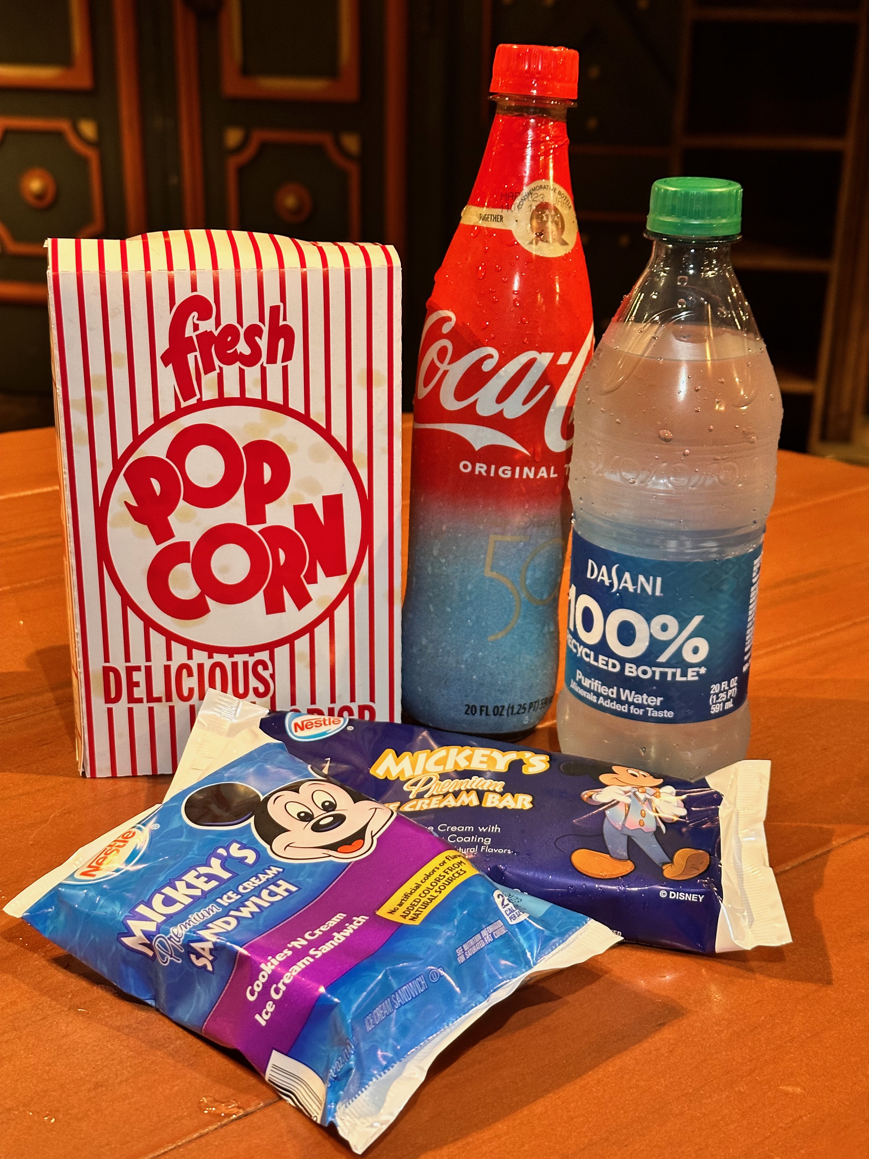 snacks like ice cream, popcorn, and select drinks.